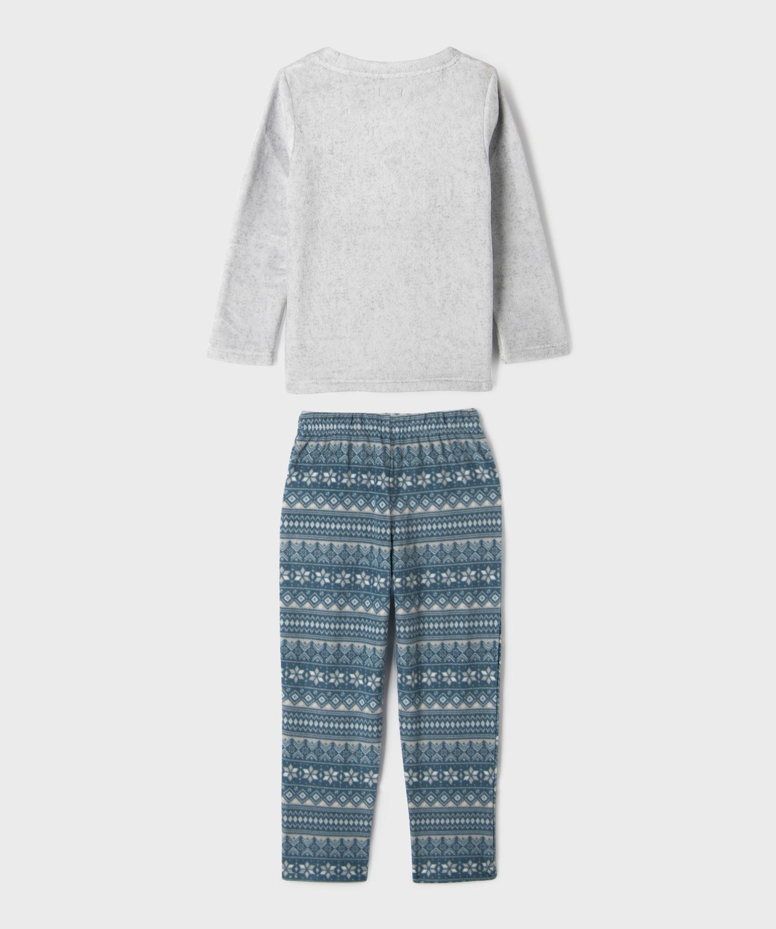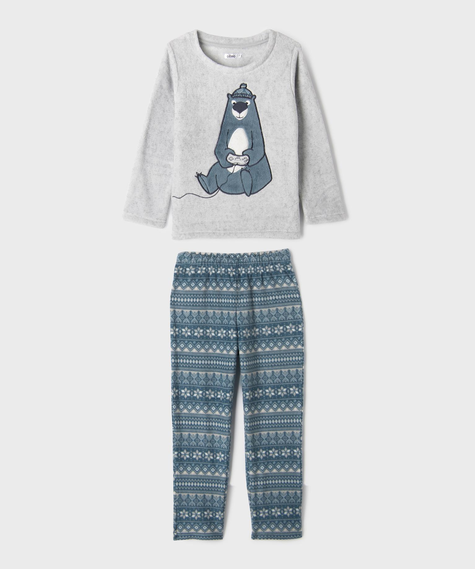 Infiniment doux, ce pyjama garçon épais et douillet, garantit chaleur et confort à votre enfant. Il se compose d'un haut de pyjama en polaire velours moelleuse, avec un col rond et un grand ours brodé sur l'avant, et d'un bas de pyjama en velours imprimé jacquard avec une ceinture élastique.
