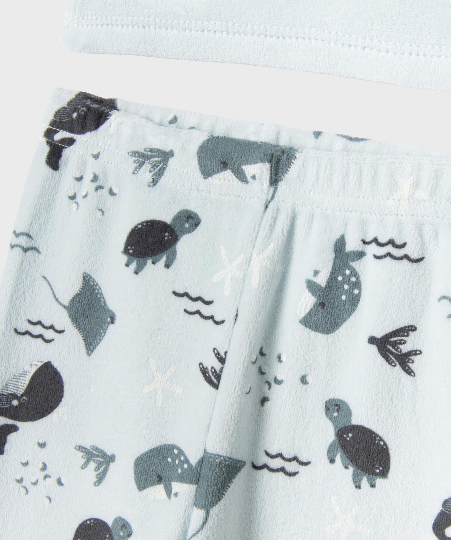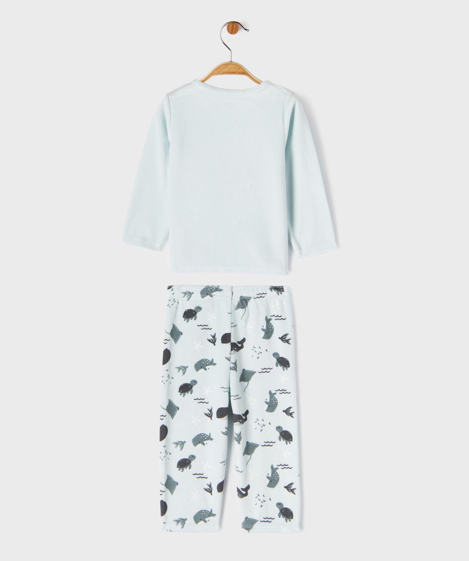 Pyjama en velours 2 pièces avec motifs marins bébé garçon bleu ciel