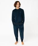 Pour des nuits bien au chaud et des journées cocooning confortables cet hiver, adoptez le pyjama en velours ! Un pyjama homme douillet composé d’un haut à manches longues avec col rond forme sweat et d’un bas de pyjama coupe jogging avec ceinture élastique ajustable par cordon. L'ensemble homewear présente une finition bord-côte au col, aux poignets, dans le bas, à la taille et aux chevilles. Petite broderie renne sur la poitrine… Pensez-y comme cadeau de Noël !