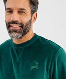 Pour des nuits bien au chaud et des journées cocooning confortables cet hiver, adoptez le pyjama en velours ! Un pyjama homme douillet composé d’un haut à manches longues avec col rond forme sweat et d’un bas de pyjama coupe jogging avec ceinture élastique ajustable par cordon. L'ensemble homewear présente une finition bord-côte au col, aux poignets, dans le bas, à la taille et aux chevilles. Petite broderie renne sur la poitrine… Pensez-y comme cadeau de Noël !