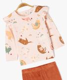 Pyjama en velours 2 pièces imprimées chats pailletés bébé rose