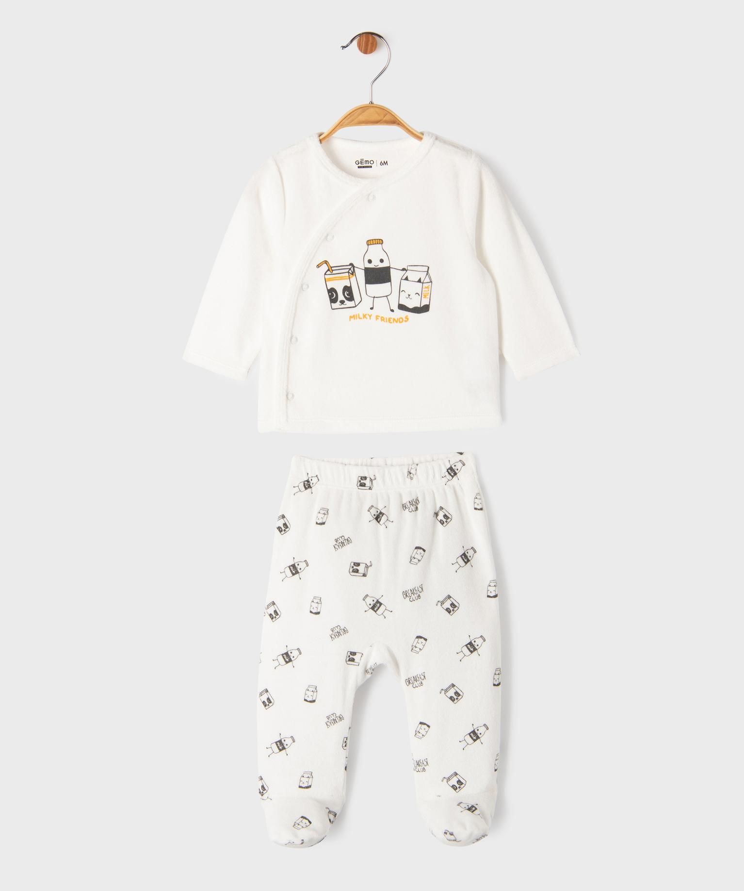 Pyjama en velours 2 pièces motif bébé blanc