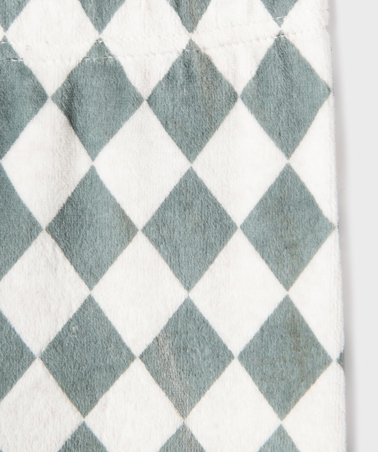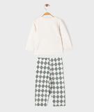 Pyjama bébé 2 pièces en velours chaud et douillet, idéal pour des nuits paisibles et les moments cocooning. Le haut, à manches longues et col rond, se distingue par une adorable broderie d’animaux sur le devant et une ouverture pressionnée sur l’épaule pour un habillage facile. Le bas, à taille élastiquée, se pare d’un remarquable motif losanges pour une touche graphique.