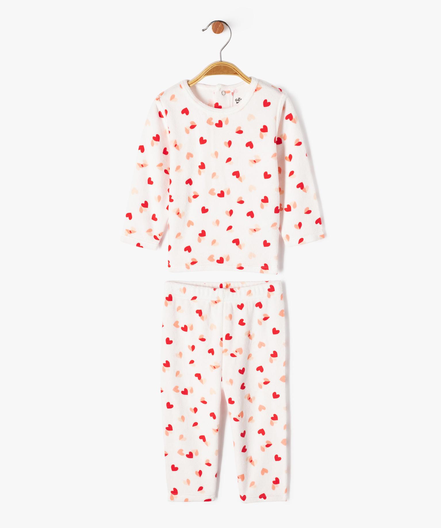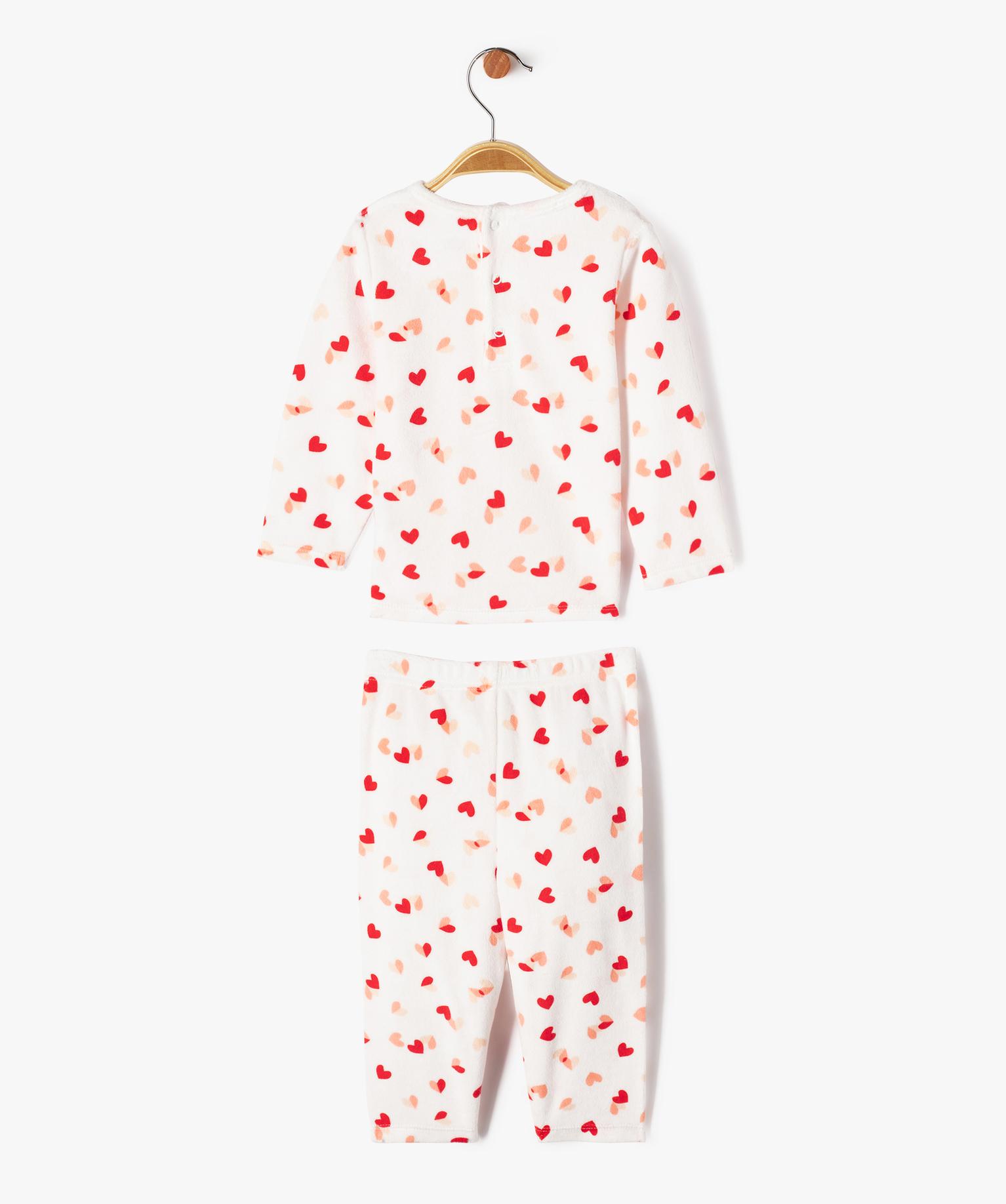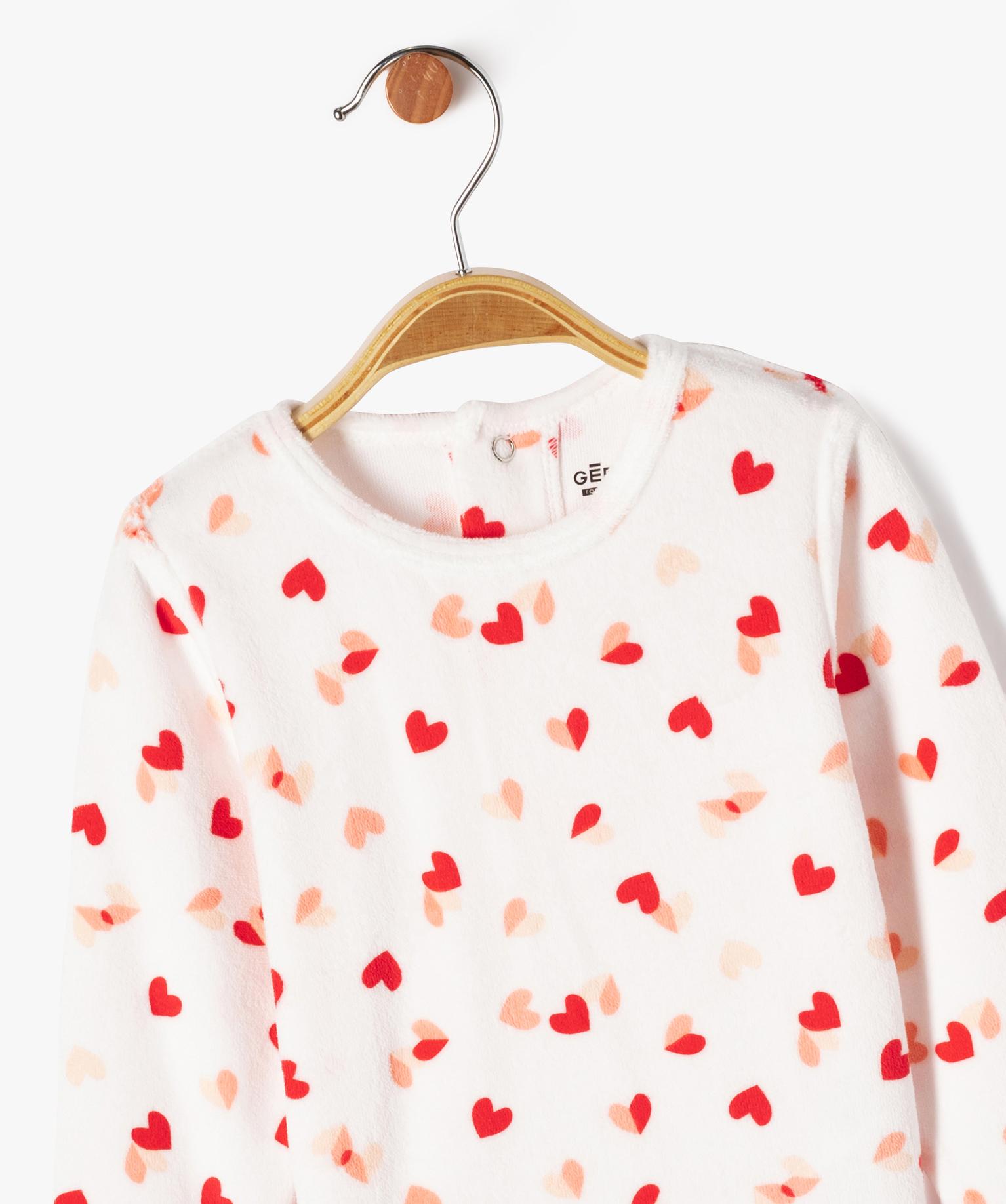 Pyjama en velours 2 pièces motifs cœurs bébé fille blanc chine
