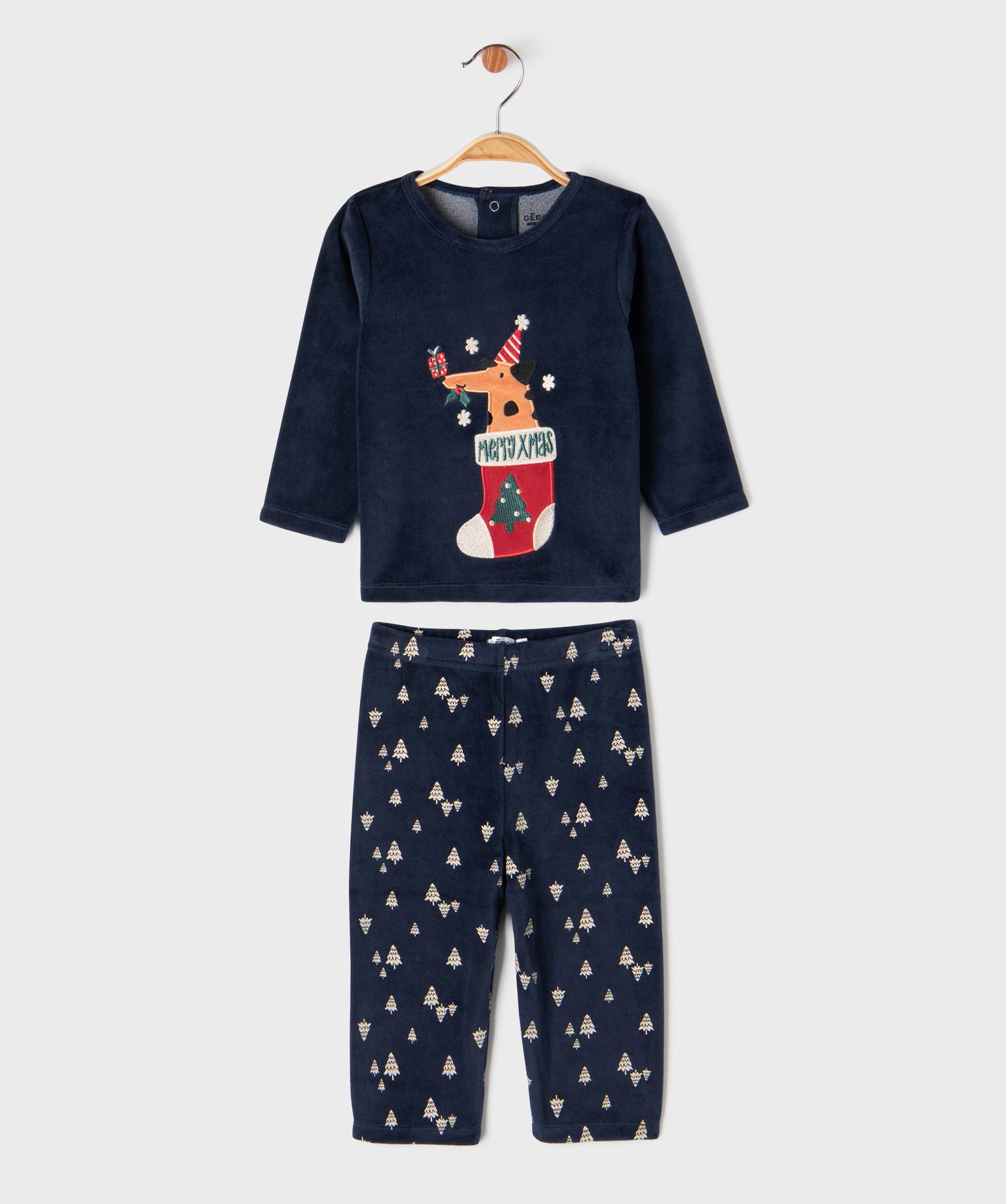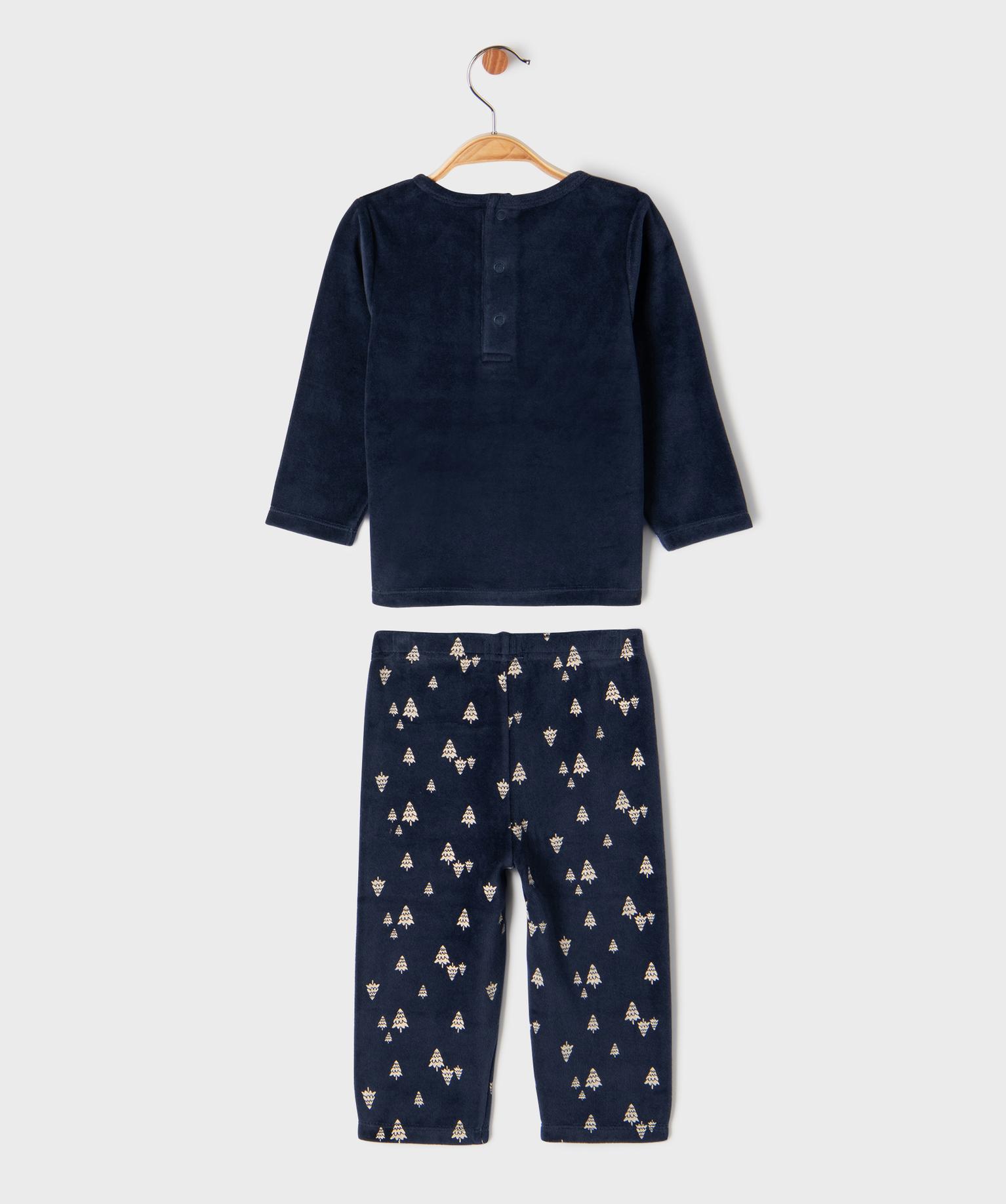 Pyjama en velours 2 pièces spécial Noël bébé marine