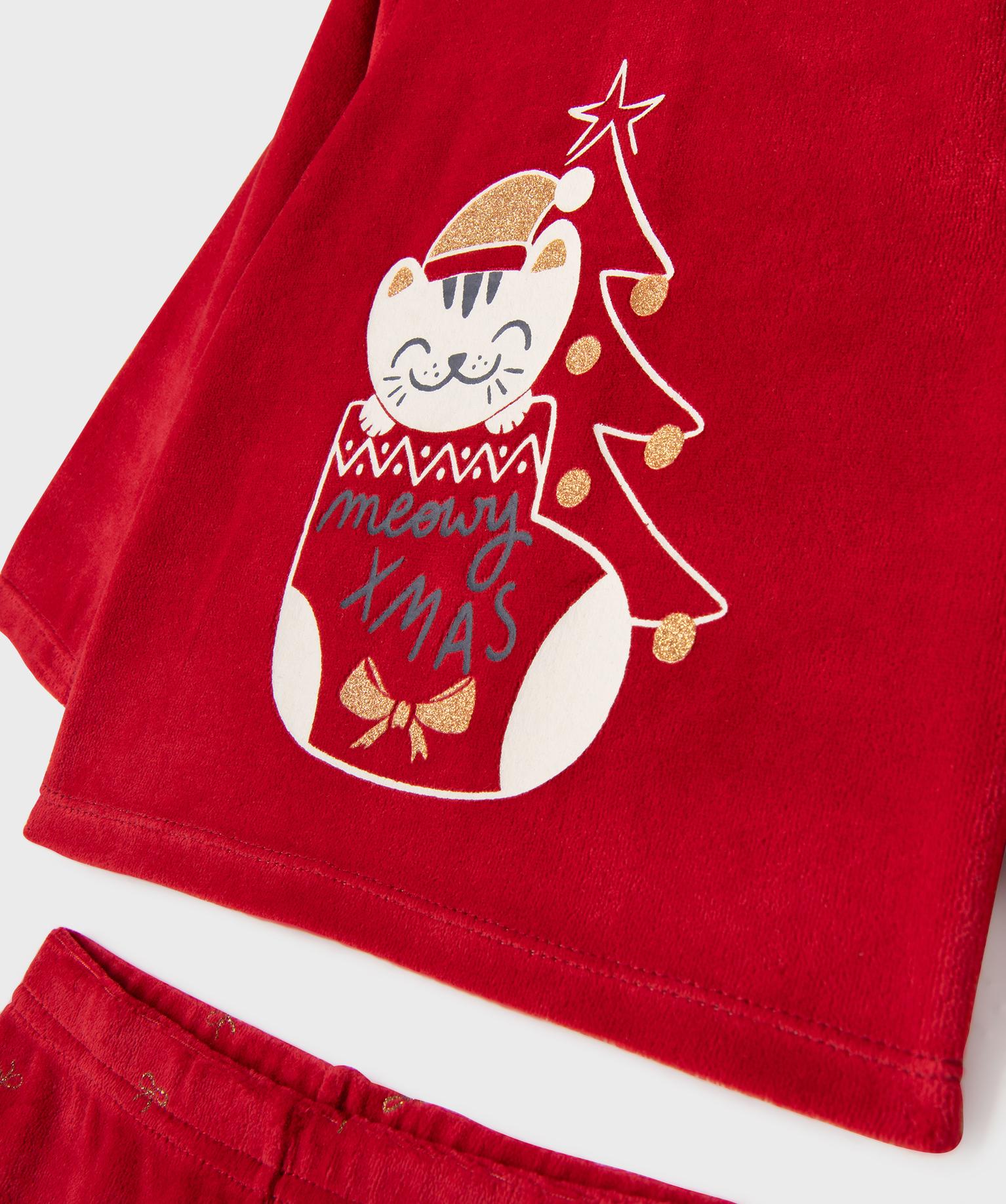 Pyjama en velours 2 pièces spécial Noël bébé rouge