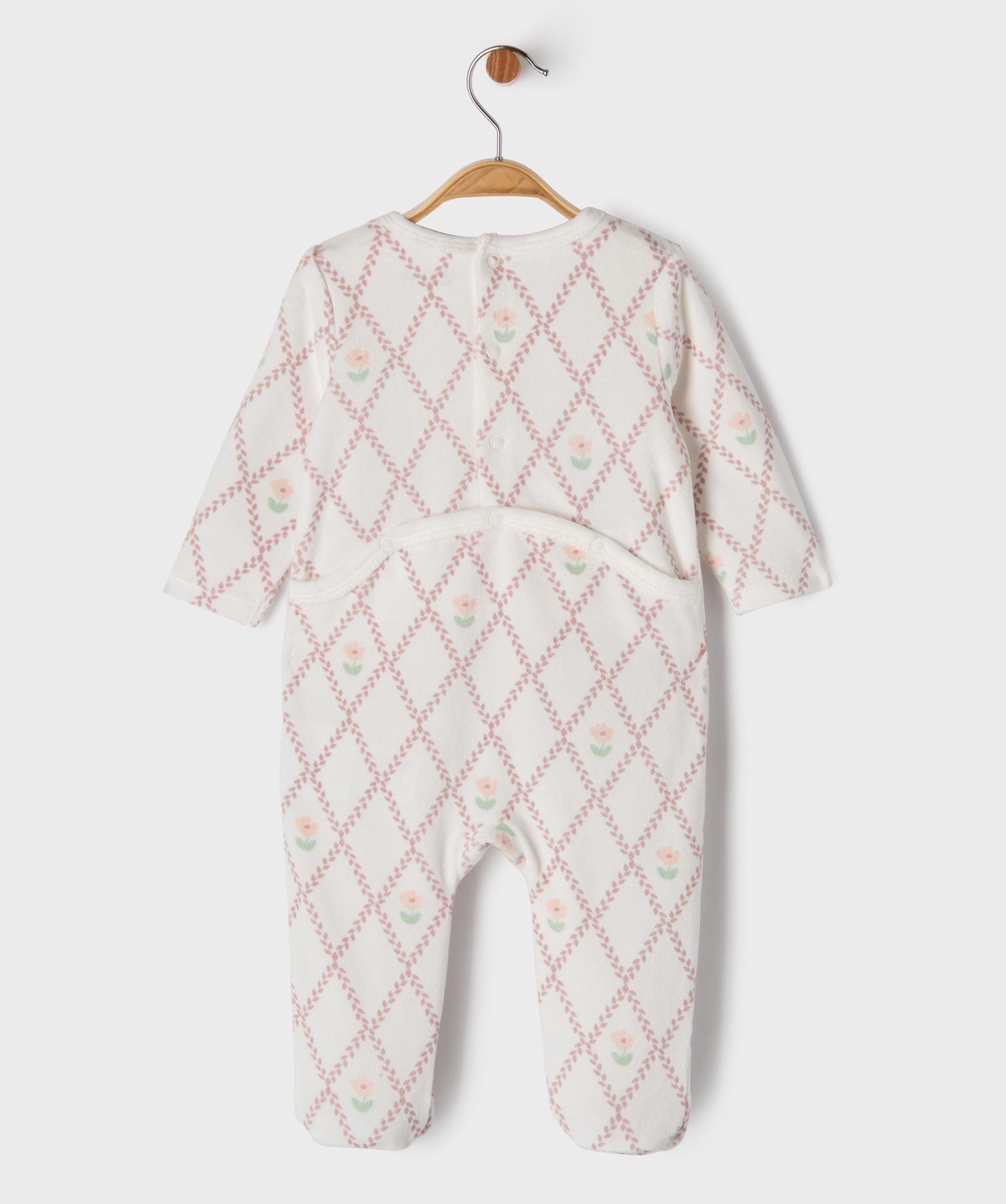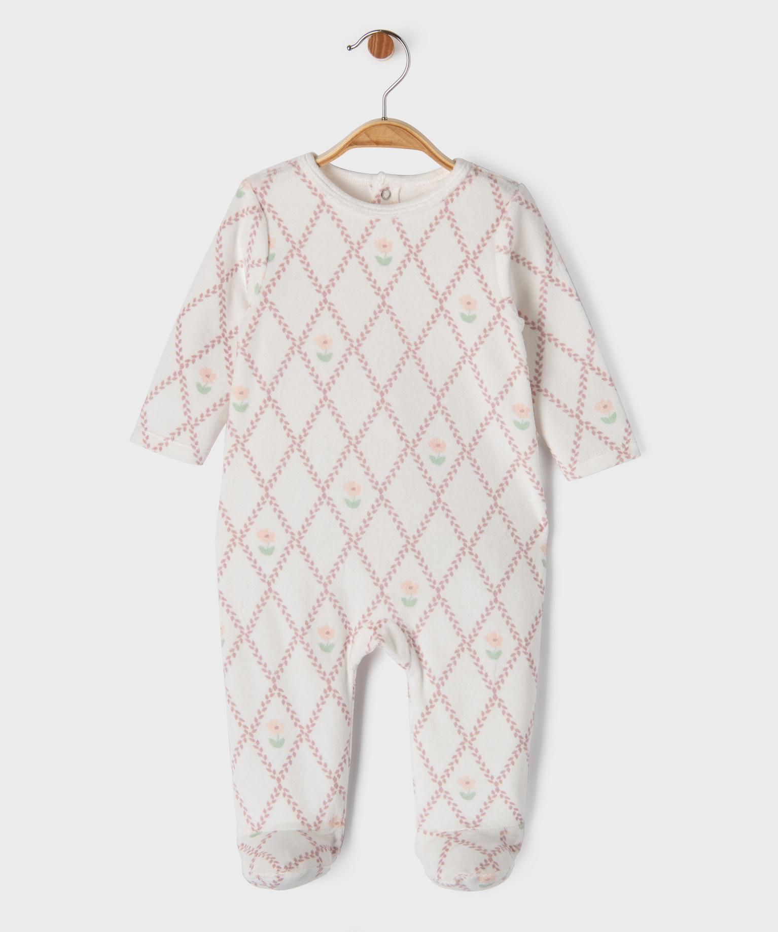 Pyjama en velours à losanges et fleurs bébé blanc