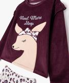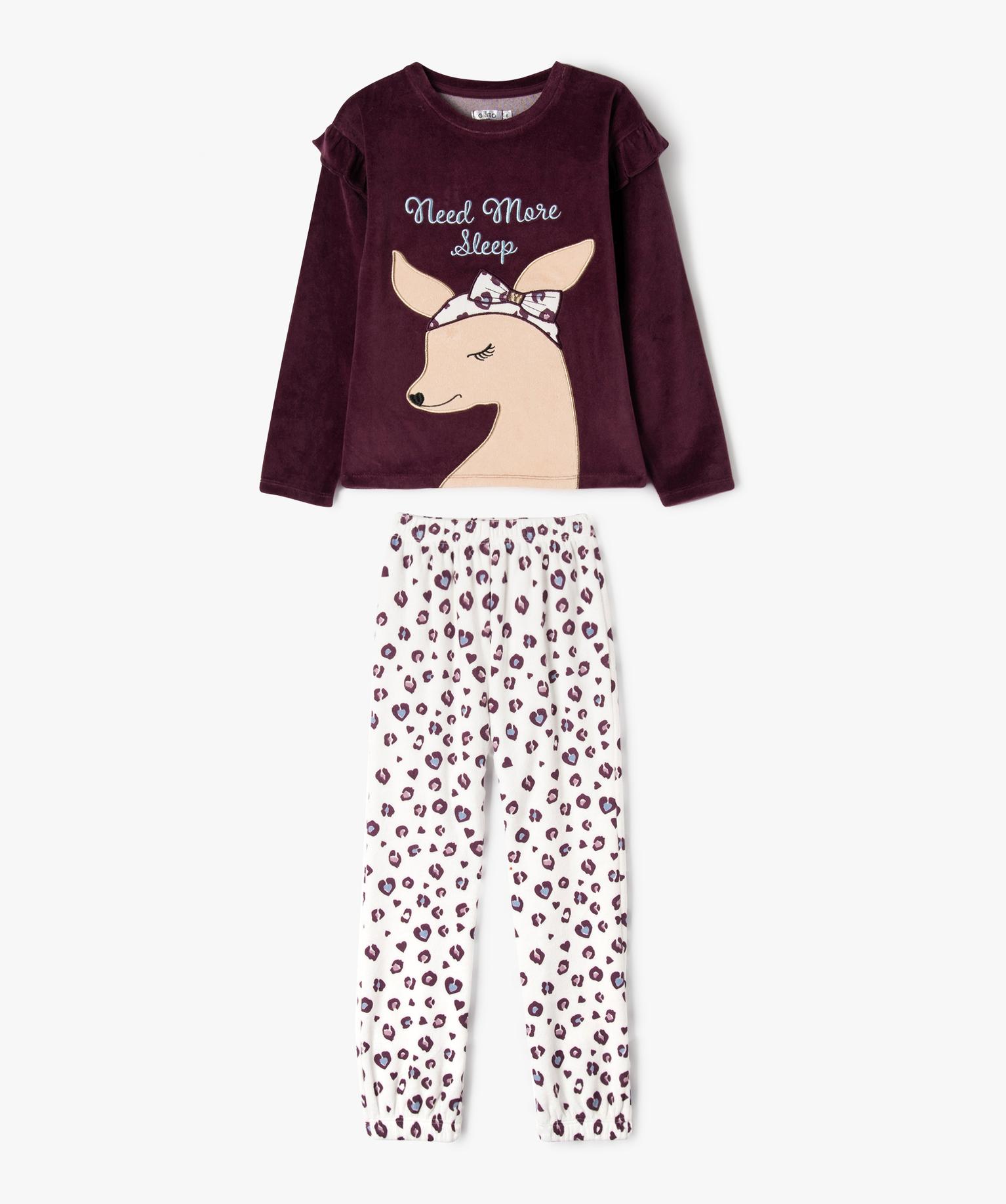 Pyjama en velours à motif biche avec petits volants fille violet vif