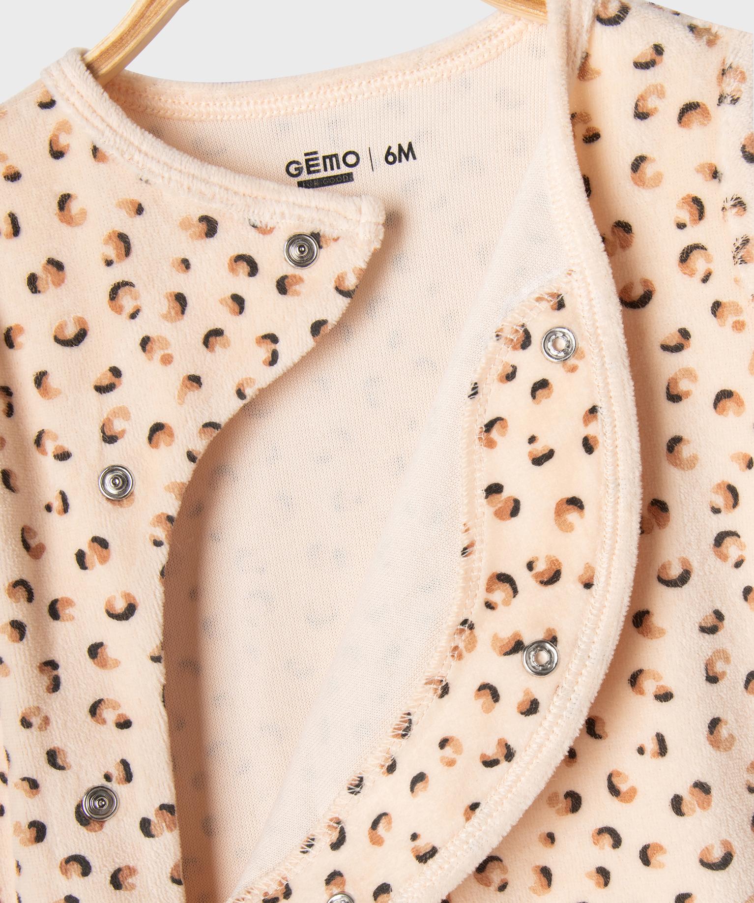 Pyjama en velours à motif léopard ouverture devant bébé fille beige