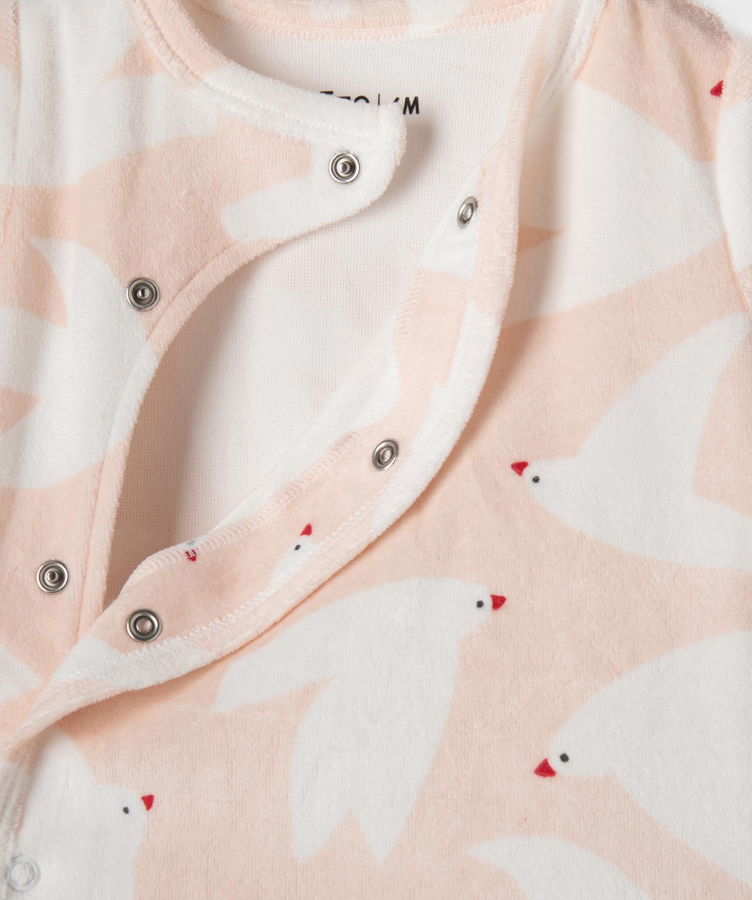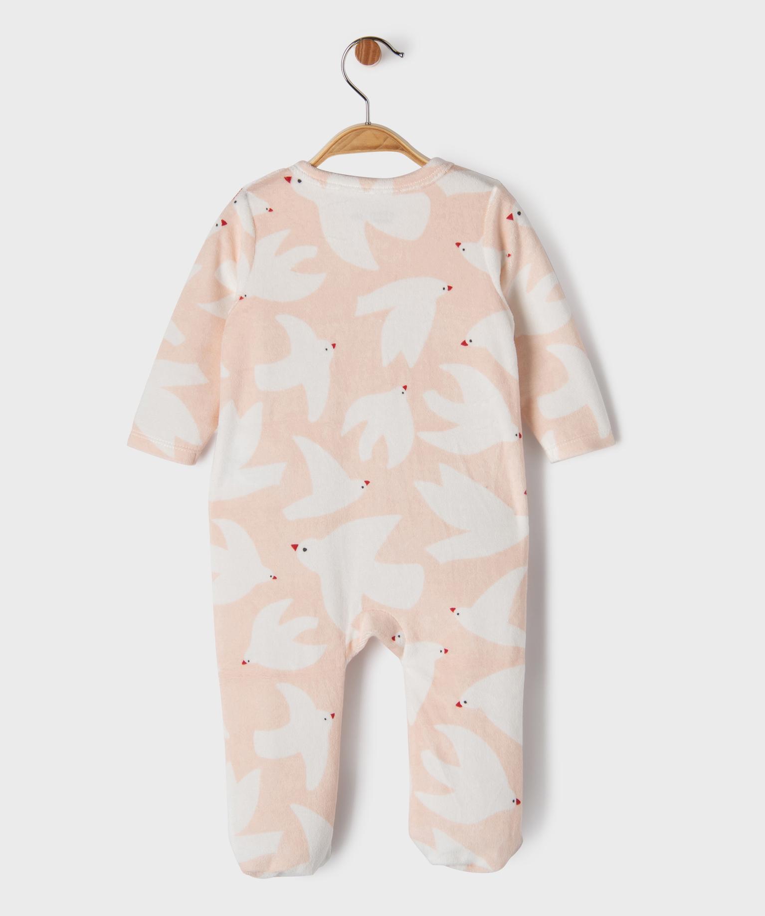 Pyjama en velours à ouverture devant et motif oiseaux bébé rose