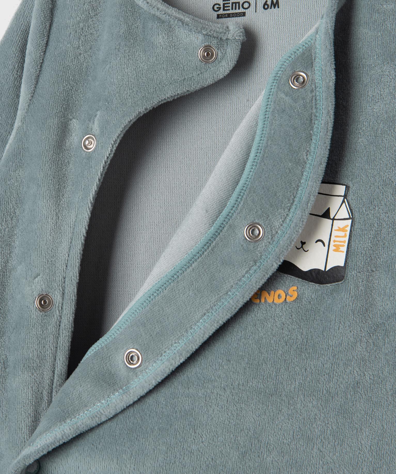 Pyjama en velours à ouverture devant imprimé bébé bleu