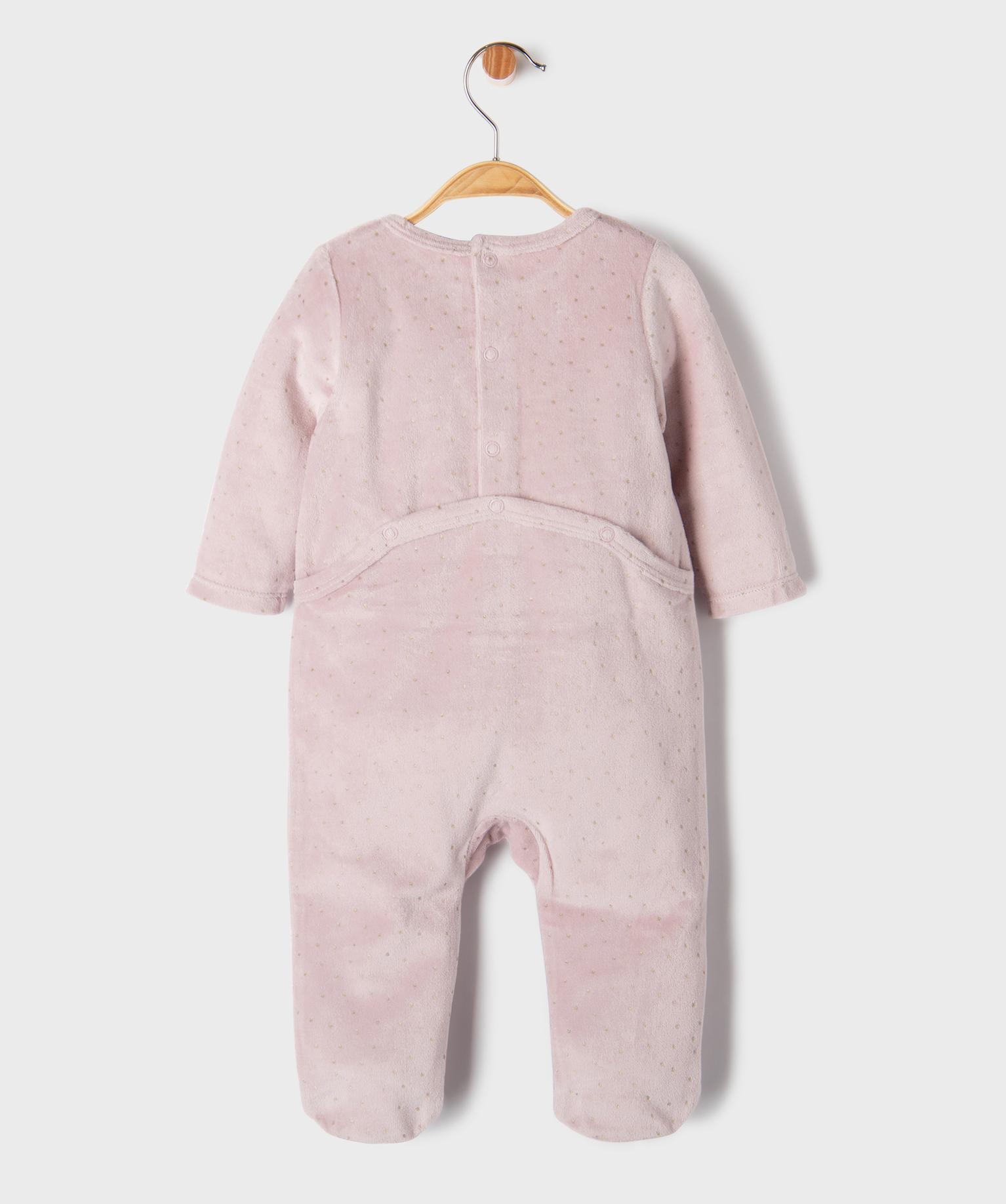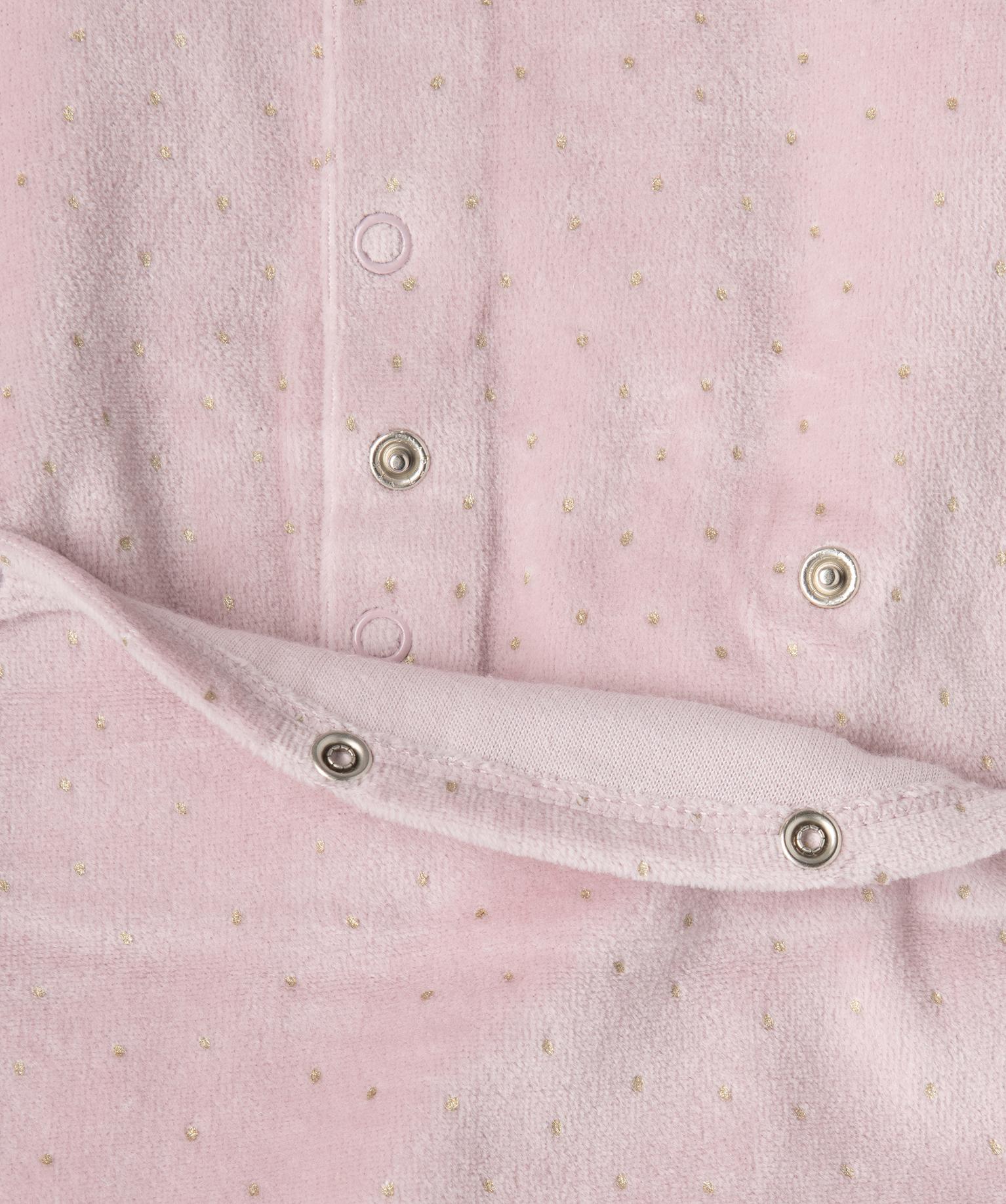 Chic et douillet, ce pyjama en velours est un incontournable pour les nuits bien au chaud. Grâce à son ouverture pont-dos pressionnée, il s’enfile rapidement et reste agréable à porter toute la nuit. Son imprimé pois dorés scintillants et son motif nœud brodé sur le buste lui donnent une allure élégante et raffinée. Un pyjama dors-bien pour bébé qui marie parfaitement confort et délicatesse. Col rond finition biais.