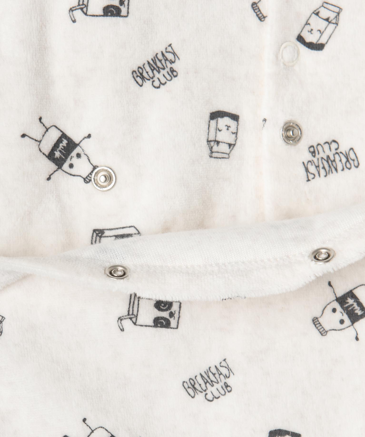 Chaleur et confort sont au rendez-vous avec ce pyjama dors-bien pour bébé en velours doux. Idéal pour accompagner les nuits d’hiver. Sa coupe pratique avec ouverture pont-dos pressionné facilite l’habillage et le change, même la nuit. Parsemé de petites briques de lait rigolotes, ce pyjama apporte une touche ludique et gourmande au dressing de votre enfant. Un pyjama craquant, pensé pour le bien-être des petits et de leurs parents.