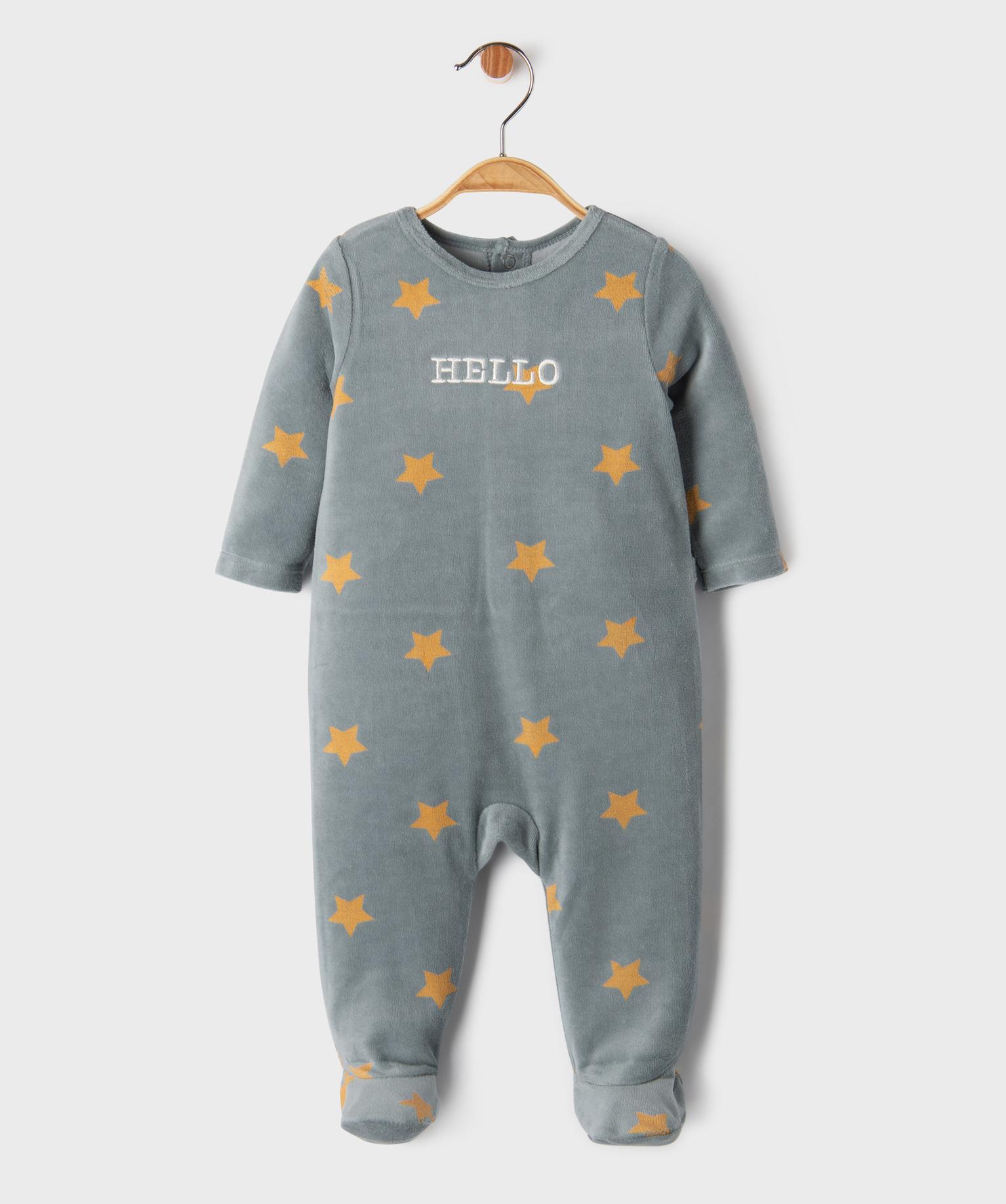 Pyjama en velours à pont-dos imprimé étoiles bébé bleu