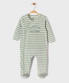 Pyjama en velours à rayures avec message brodé bébé garçon vert