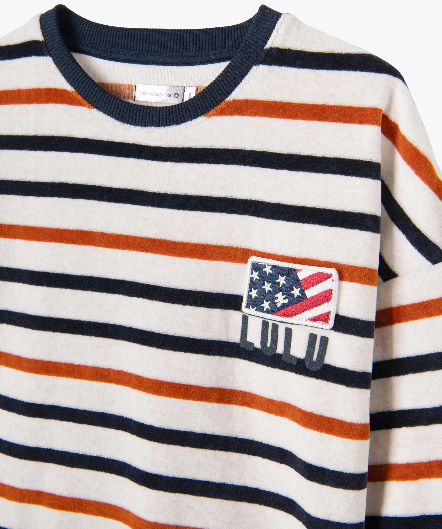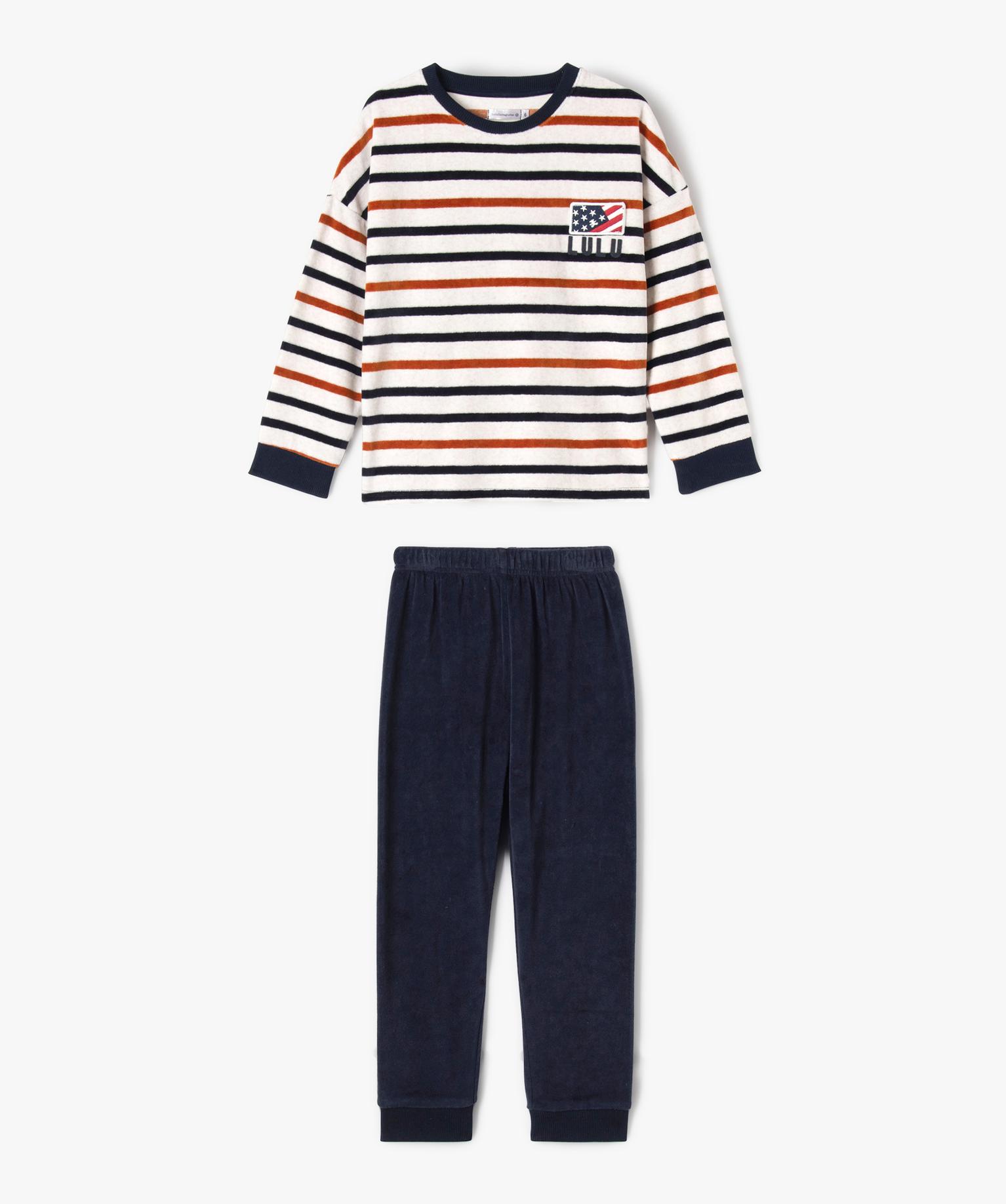 Pyjama en velours avec haut rayé garçon - LuluCastagnette raye