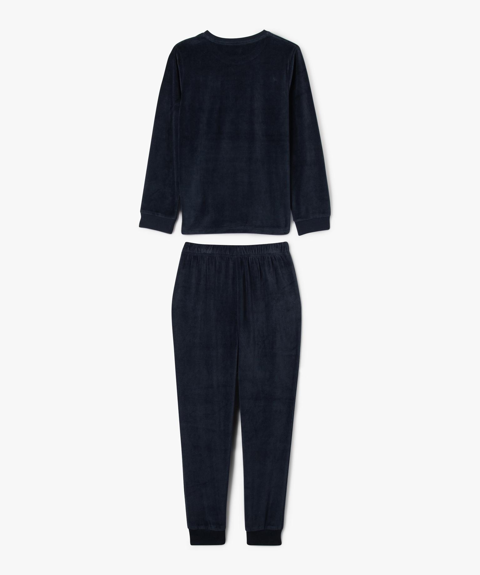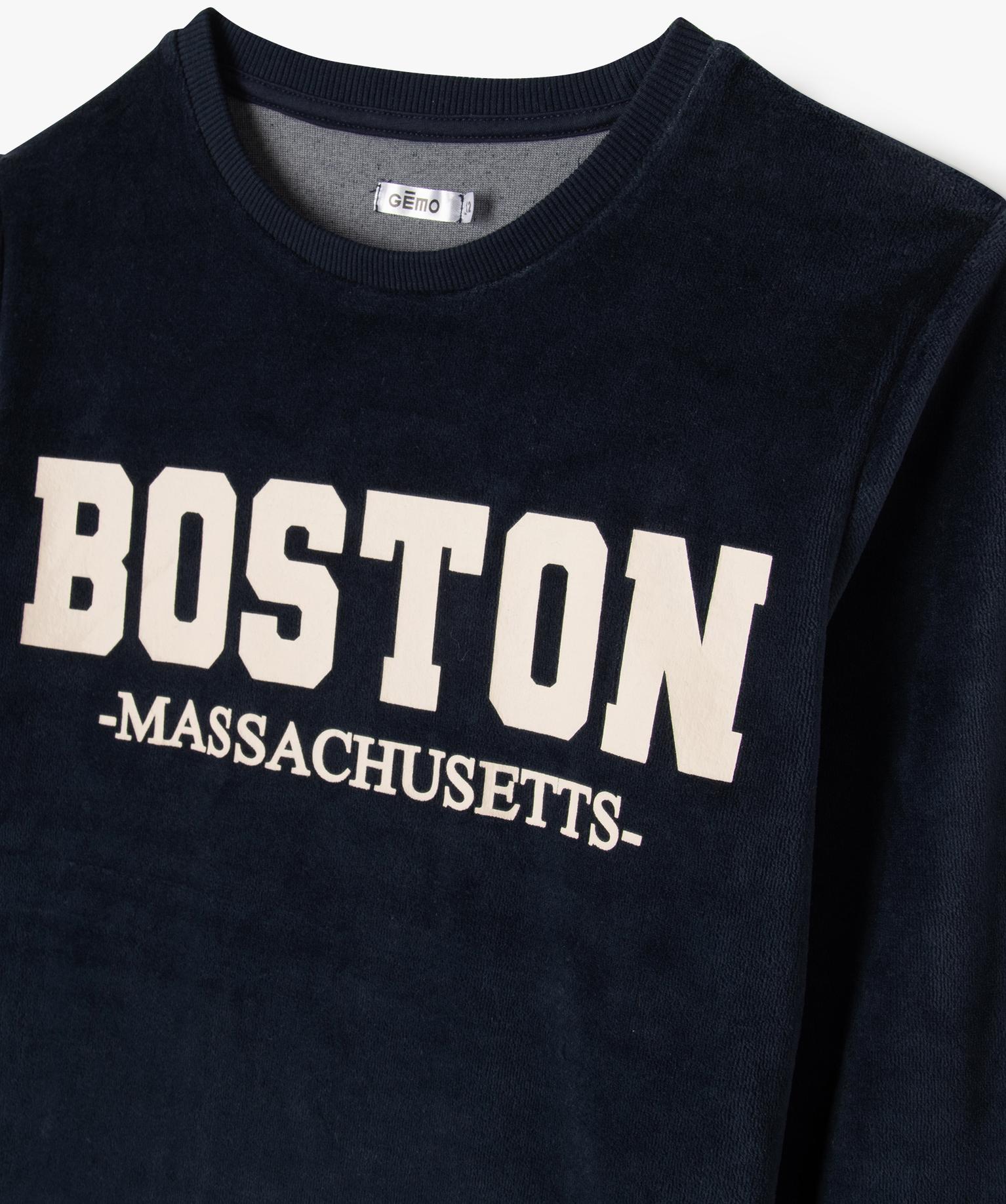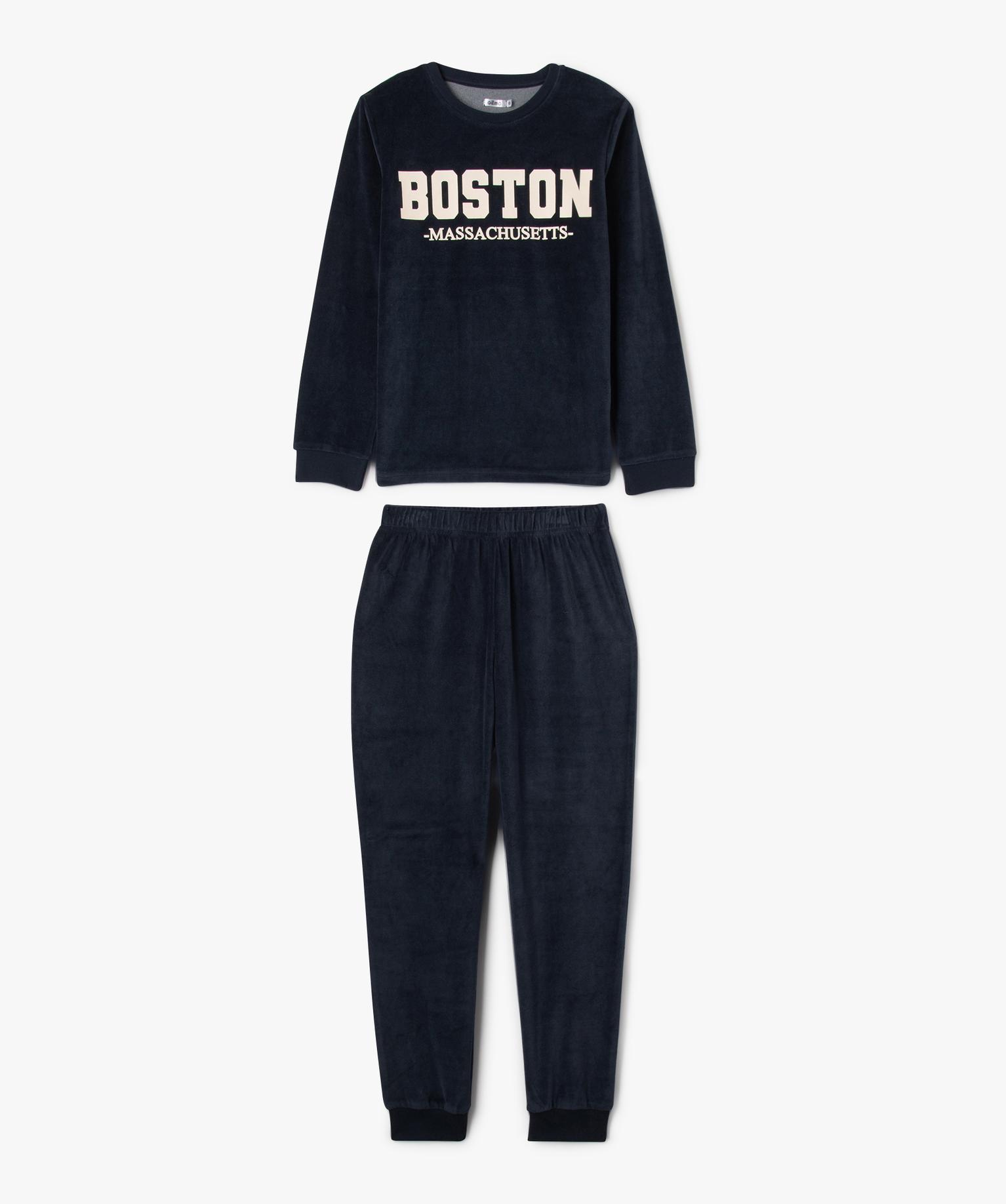 Pyjama en velours avec inscription Boston garçon bleu fonce