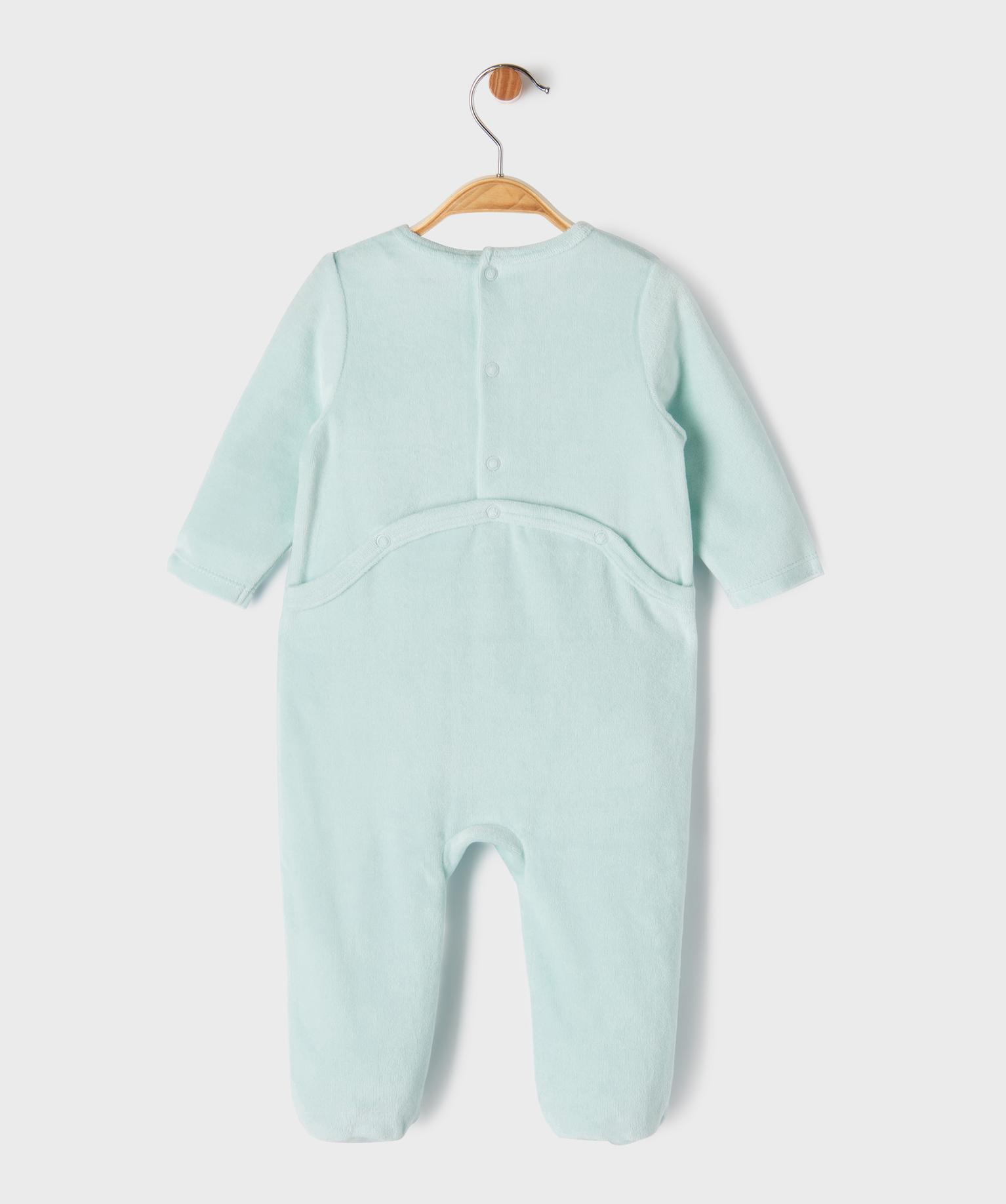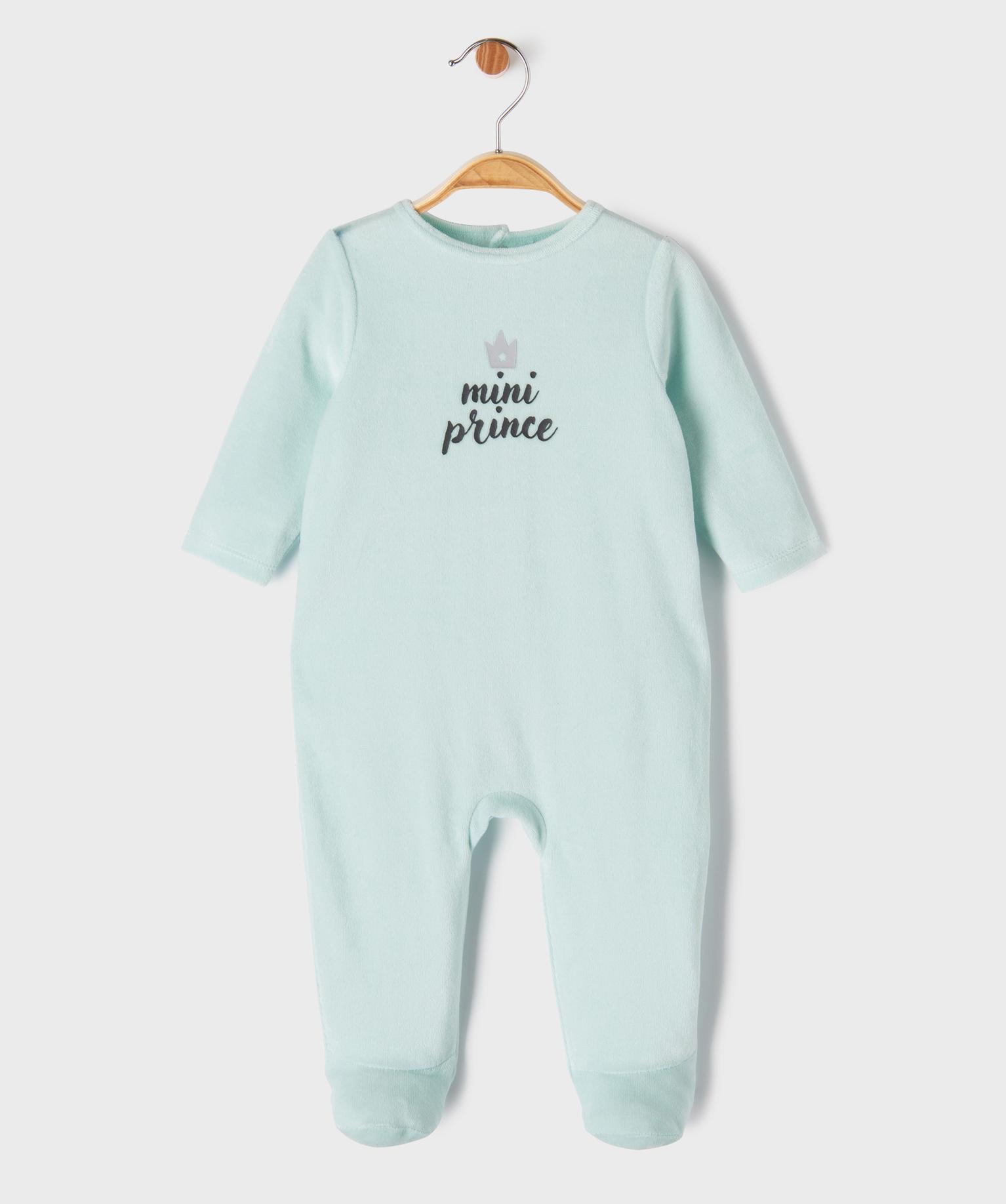 Pyjama en velours avec inscription poitrine bébé garçon bleu clair
