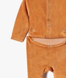 Laissez-vous séduire par la douceur de ce pyjama en velours, un indispensable du vestiaire de bébé. Orné d'un charmant animal brodé, mouton ou dinosaure selon les coloris, il allie confort et tendresse. Ce pyjama bébé est doté d'une fermeture à pont-dos avec boutons pression, conçue pour simplifier l'habillage et le change de votre tout-petit.