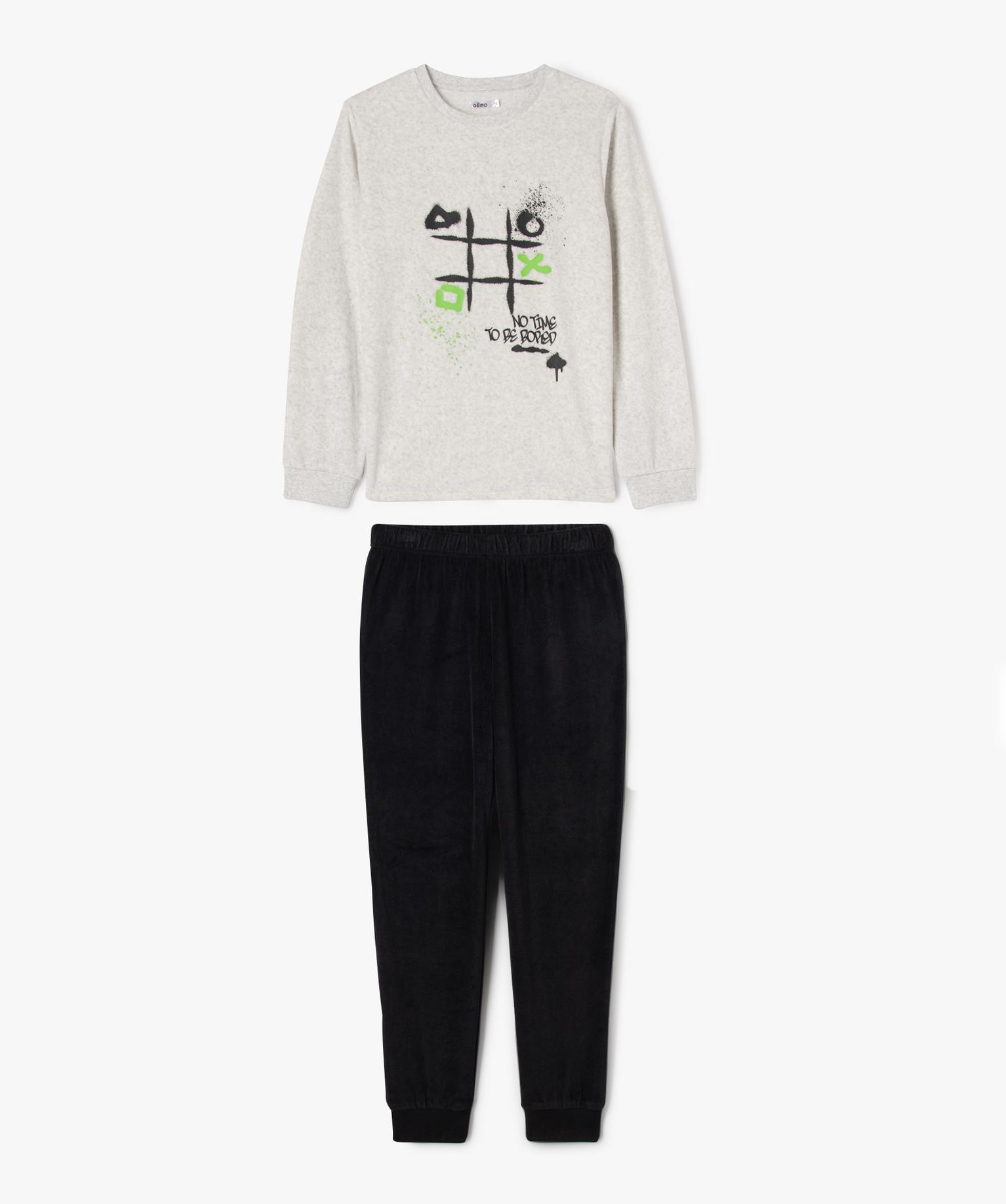 Pyjama en velours avec motif graffitis garçon gris