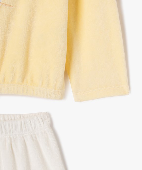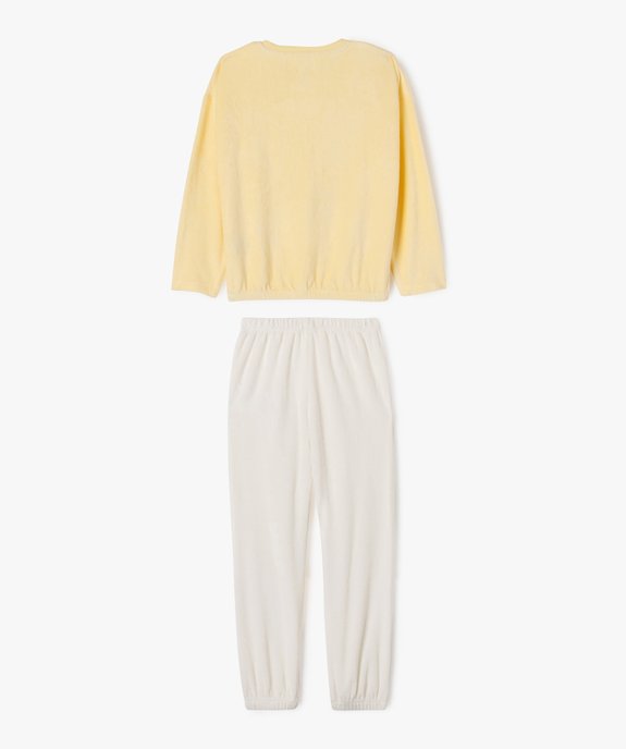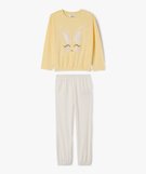 Assurez à votre fille une allure irrésistible au moment du coucher avec ce pyjama orné d’un adorable motif lapin brodé sur le buste. Un pyjama en velours composé d’un haut ample avec épaules tombantes subtilement resserré dans le bas par un élastique, ajoutant une touche de confort et de style. Complété par un pantalon au coloris contrastant, doté d'une ceinture élastique et de bas de jambes resserrés, ce pyjama fille plein de charme promet des nuits douces.