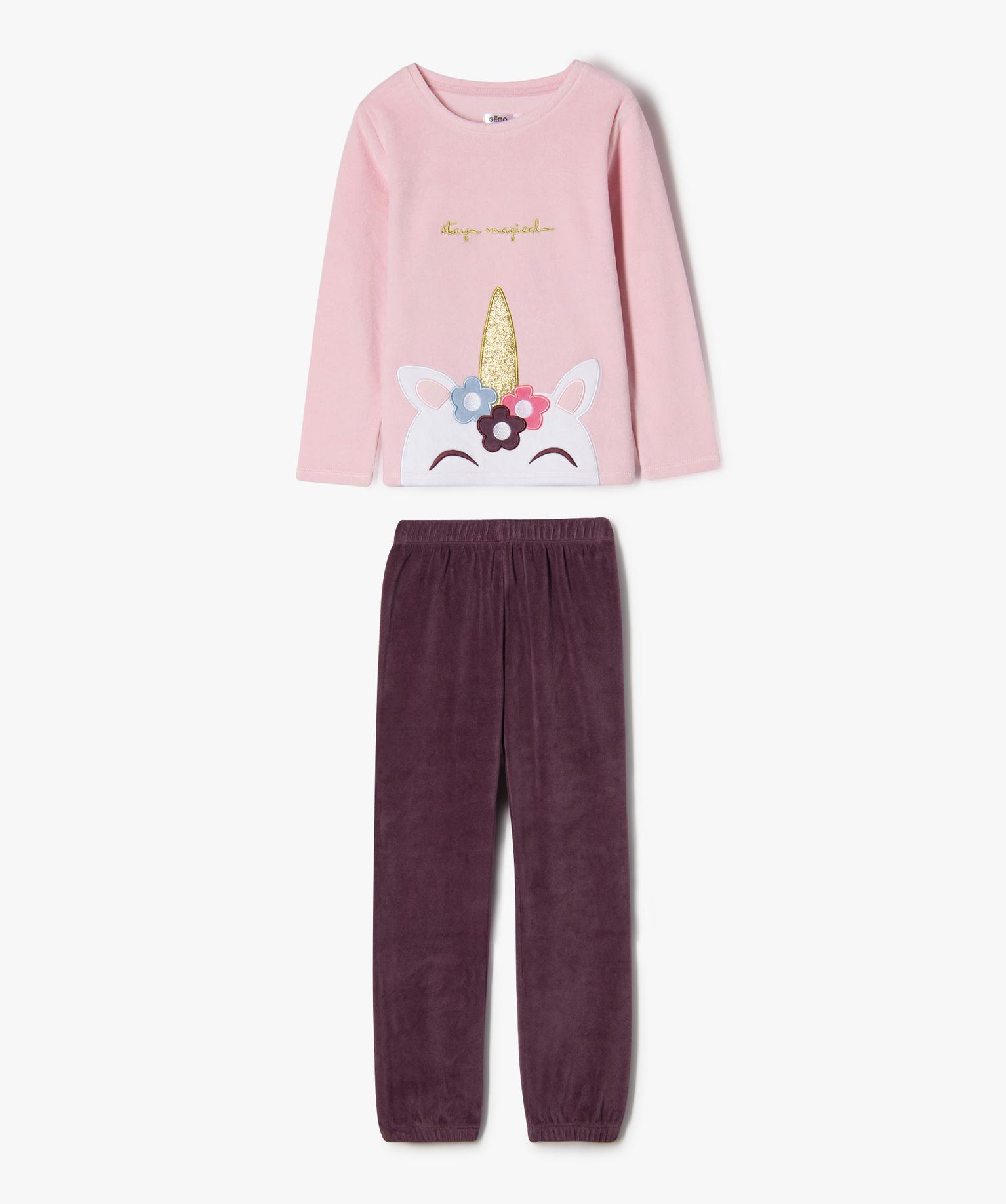Indispensable du vestiaire des enfants, le pyjama en velours ! Ce pyjama fille s’affiche dans une version bicolore avec un large motif licorne sur le haut rehaussé de touches pailletées et d’un joli message brodé. Le pantalon uni, élastiqué à la taille et aux chevilles, est facile à enfiler. Un pyjama licorne tout doux, à adopter sans attendre.