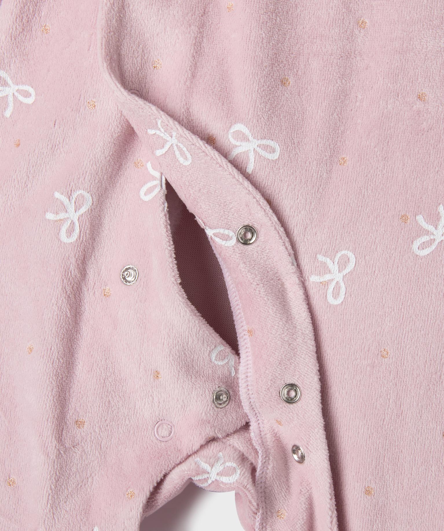 Pyjama en velours avec ouverture avant et motifs pois bébé rose