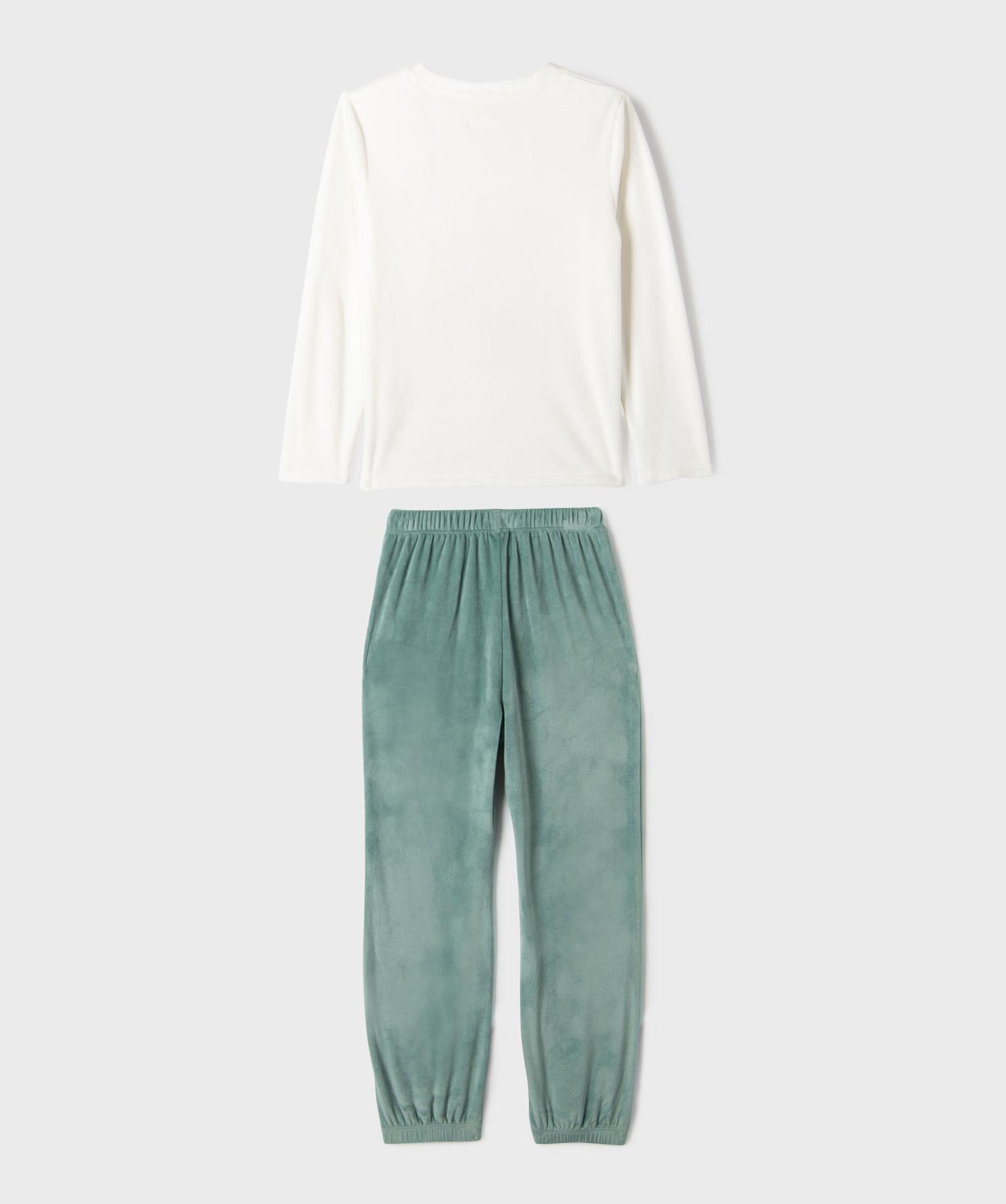 Pyjama en velours bicolore à motif chat fille blanc