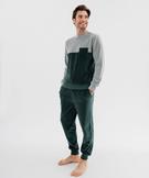 Ce pyjama en velours vous promet des soirées confortables et des nuits douces ! Un pyjama homme composé d’un haut à manches longues bicolore avec poche poitrine et d’un pantalon avec ceinture élastique en bord-côte ajustable par cordon coulissant. Un ensemble homewear qui offre un maximum de confort tout en vous permettant de rester élégant. Finitions bord-côte.