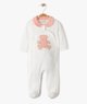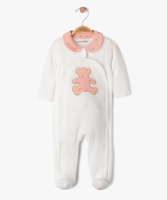 Craquez pour ce pyjama en velours bébé signé LuluCastagnette : un véritable concentré de douceur et d'élégance. Avec son col claudine fleuri orné de dentelle, il apporte une touche raffinée aux tenues homewear de votre bébé. Le velours finement côtelé garantit un confort optimal avec beaucoup de charme. Pratique, l'ouverture intégrale par boutons-pression à l'avant facilite le change et l'habillage. Le célèbre ourson de la marque LuluCastagnette est brodé en fil doré sur la poitrine. Un petit ourson imprimé se cache sous les pieds.