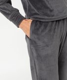 Pour passer des soirées cocooning confortables et des nuits pleines de douceur, optez pour ce magnifique pyjama en velours côtelé. Un pyjama femme composé d’un haut à manches longues et col rond et d’un pantalon avec ceinture élastique avec bas de jambes resserrés par un large biais. Un ensemble de pyjama décliné dans un coloris tendre à adopter sans hésiter.