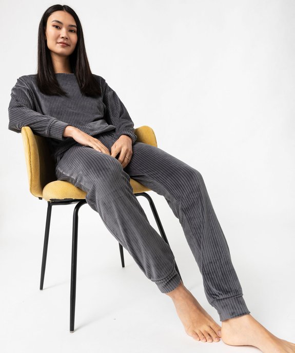 Pyjama en velours côtelé femme anthracite
