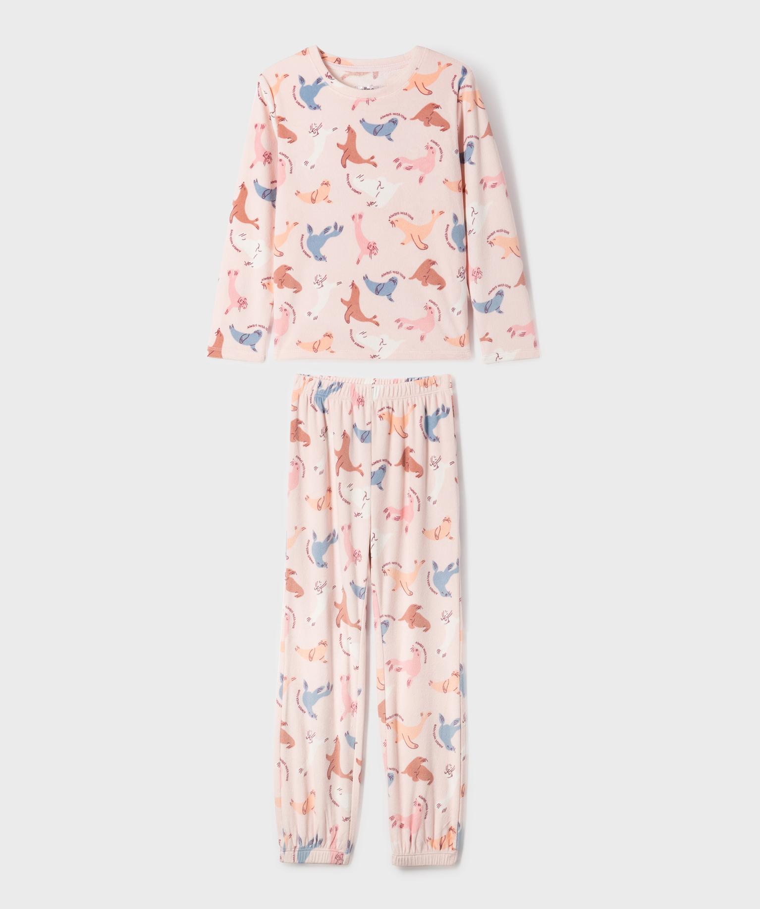 Craquez pour le look joyeux et tendre de ce pyjama fille en velours fin ultra doux ! Le pyjama est entièrement imprimé de phoques multicolores. Le haut à manches longues possède un col rond et une coupe droite. Le bas de pyjama est doté d’une ceinture et de bas de jambes élastiqués. Un pyjama 2 pièces confortable et facile à enfiler, idéal pour des nuits cocooning réussies.