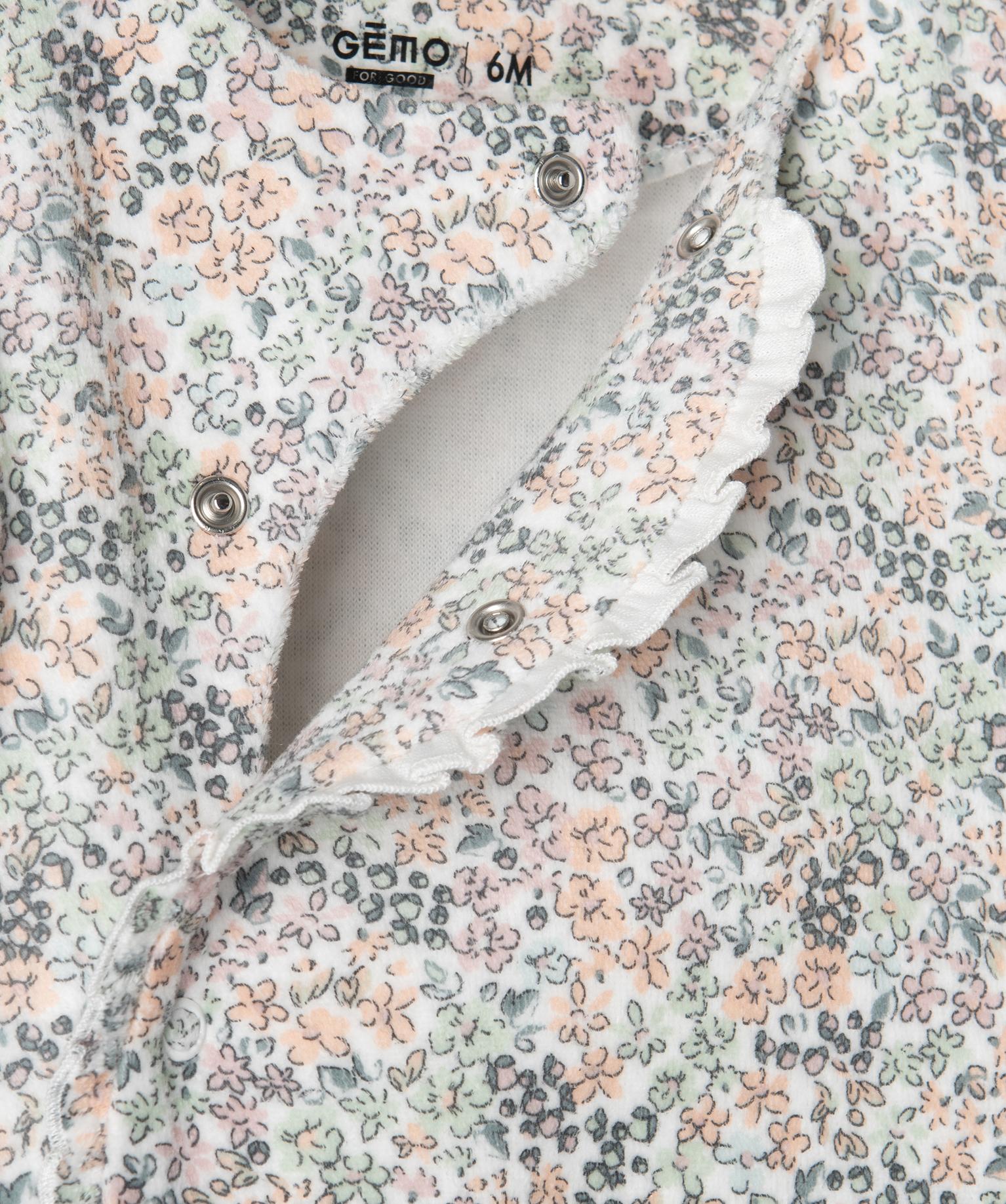 Pyjama en velours fleuri à ouverture devant bébé vert