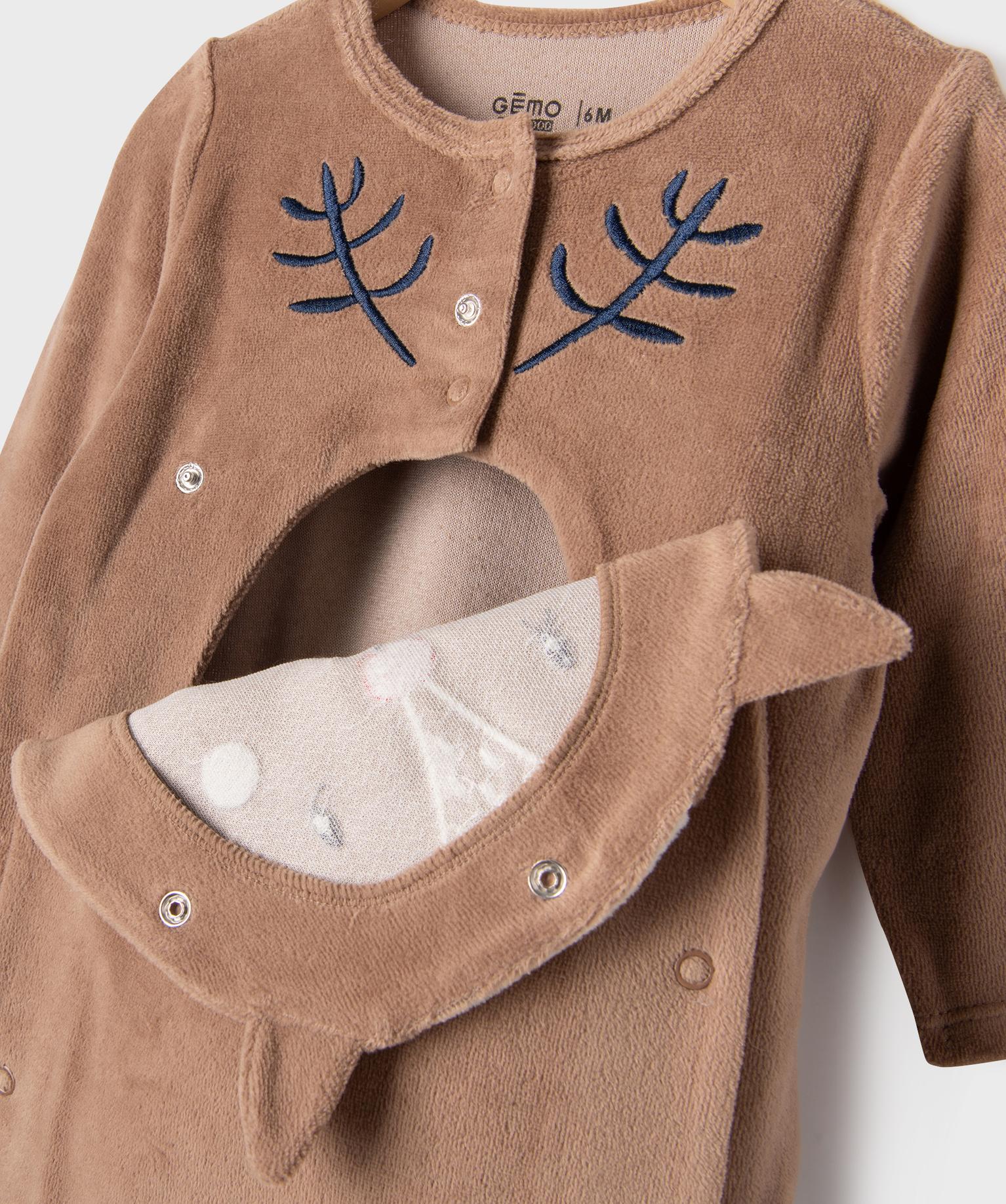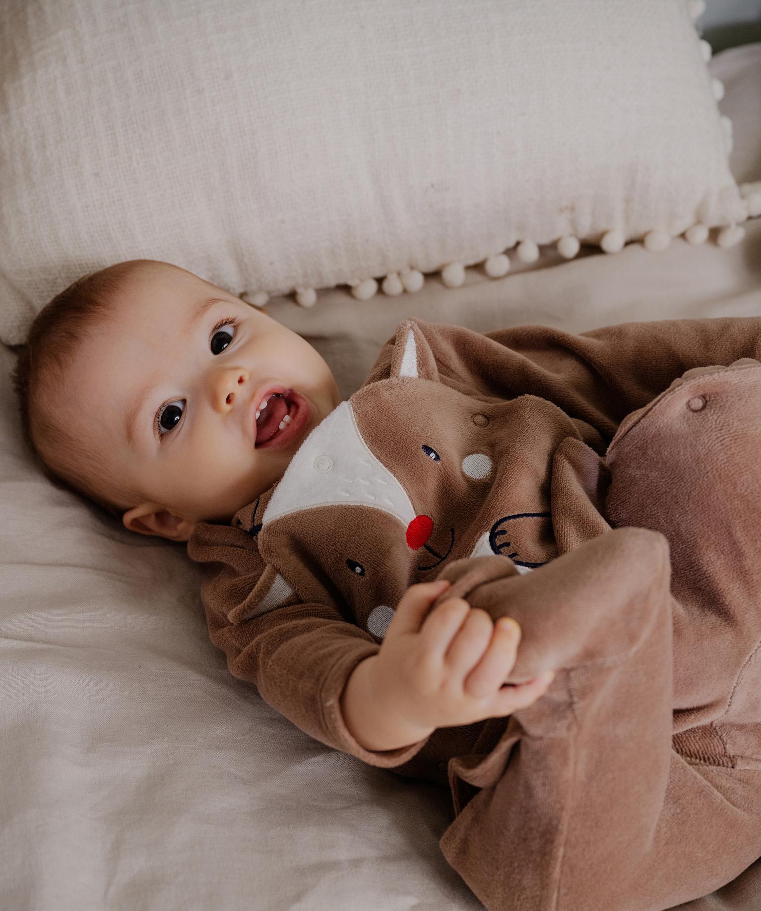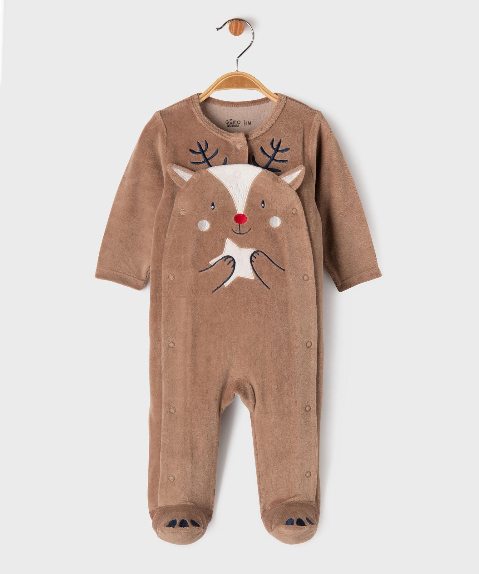 Pyjama en velours ouvert devant motif renne noël bébé marron