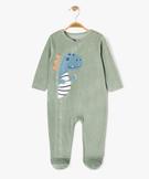 Pyjama en velours ouverture devant à motif dinosaure bébé garçon vert clair