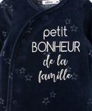 Pyjama en velours ouverture devant avec message bébé noir chine