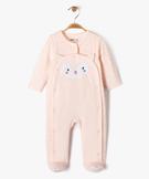 Pyjama en velours ouverture devant motif animal et pois dorés bébé rose