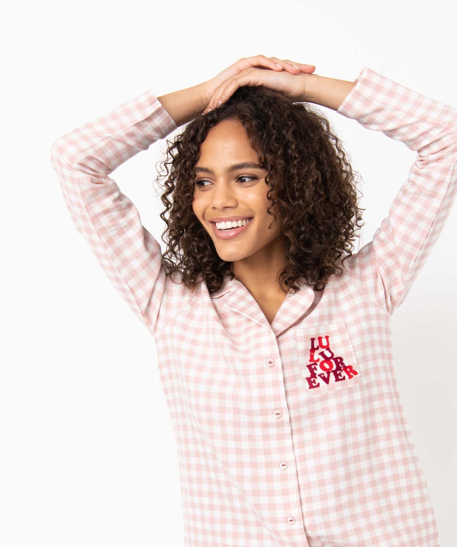 Offrez-vous des soirées et des nuits confortables avec ce pyjama LuluCastagnette. Un pyjama à carreaux, particulièrement féminin, décliné dans des teintes douces. Il se compose d’une veste fermée par boutons et agrémentée d’une poche poitrine avec inscription velours et d’un pantalon ample avec ceinture élastiquée ajustable par cordon coulissant. Un pyjama femme à intégrer à votre dressing homewear et à porter également comme tenue d’intérieur. Petit bouton siglé Lulu dans le bas de la veste.