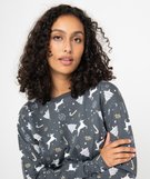 Craquez pour ce pyjama pour femme entièrement parsemé de motifs de Noël ! Sapins, rennes, étoiles et sucres d’orge, tout est réuni ! Un pyjama 2 pièces composé d’un tee-shirt à manches longues et d’un pantalon avec ceinture élastiquée. Confectionné en coton, cette tenue d’intérieur offre un maximum de confort.