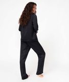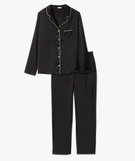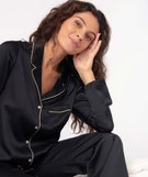 Restez élégante jusqu’au bout de la nuit avec ce pyjama en matière satinée. Un pyjama femme composé d’une veste à manches longues et d’un pantalon droit, offrant une allure ultra chic. La veste est agrémentée d’un passepoil scintillant sur le col et sur la poche poitrine pour offrir encore plus de style. Un pyjama ample à intégrer dans le vestiaire homewear et à porter pour dormir ou comme tenue d’intérieur.