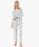 Adorable pyjama femme en maille polaire chaude et douillette. Il se compose d’un haut large, à col rond et manches longues et d’un pantalon avec taille et bas de jambe élastiqués. Un pyjama 100% confort qui se porte aussi comme tenue d'intérieur ! Craquez pour ses différents coloris et ses motifs fantaisie.