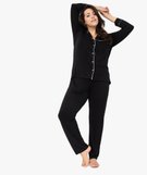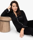 Pyjama femme grande taille deux pièces : chemise et pantalon noir