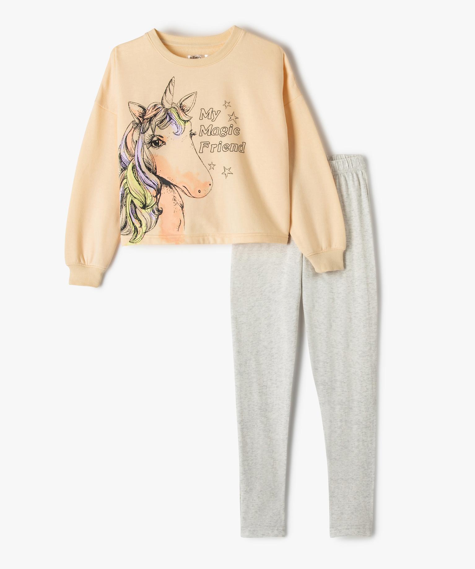 Pyjama fille avec haut molletonné à motif licorne orange clair