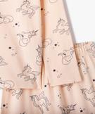 Ce pyjama imprimé de licornes va donner aux fillettes l’envie d’aller se coucher pour faire de beaux rêves ! Composé d’un tee-shirt à manches longues et d’un pantalon façon jogger resserré aux chevilles par un élastique, ce pyjama fille affiche un look particulièrement girly. Haut à col rond finition biais assorti. Pantalon avec taille élastiquée et bas de jambes resserrés. Confection en jersey léger, idéal pour les beaux jours et l'intersaison.