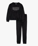 Lorsque les filles auront essayé ce pyjama en velours, elles ne voudront plus le quitter ! Confectionné dans une matière velours ultra extensible, il offre un confort exceptionnel. Ce pyjama fille se compose d’un sweat avec inscription brodée en fil pailleté, resserré par un élastique dans le bas et d’un pantalon avec taille élastiquée resserré aux chevilles. Ce pyjama se porte également comme tenue d’intérieur. Finitions biais aux poignets et aux chevilles. Col rond.
