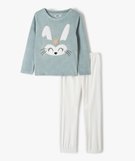 Pyjama fille en velours intérieur peluche imprimé lapin bleu
