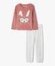 Pyjama fille en velours intérieur peluche extra douillet, composé de 2 pièces bicolores pour un ravissant effet mix&match. Il se compose d’un haut de pyjama à manches longues orné d’une grande broderie lapin avec détails dorés, et d’un bas de pyjama avec taille et chevilles élastiquées. Ce pyjama lapin fait partie des must-haves du vestiaire homewear !