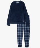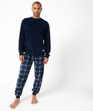 Pyjama homme chaud et douillet avec bas à carreaux bleu fonce