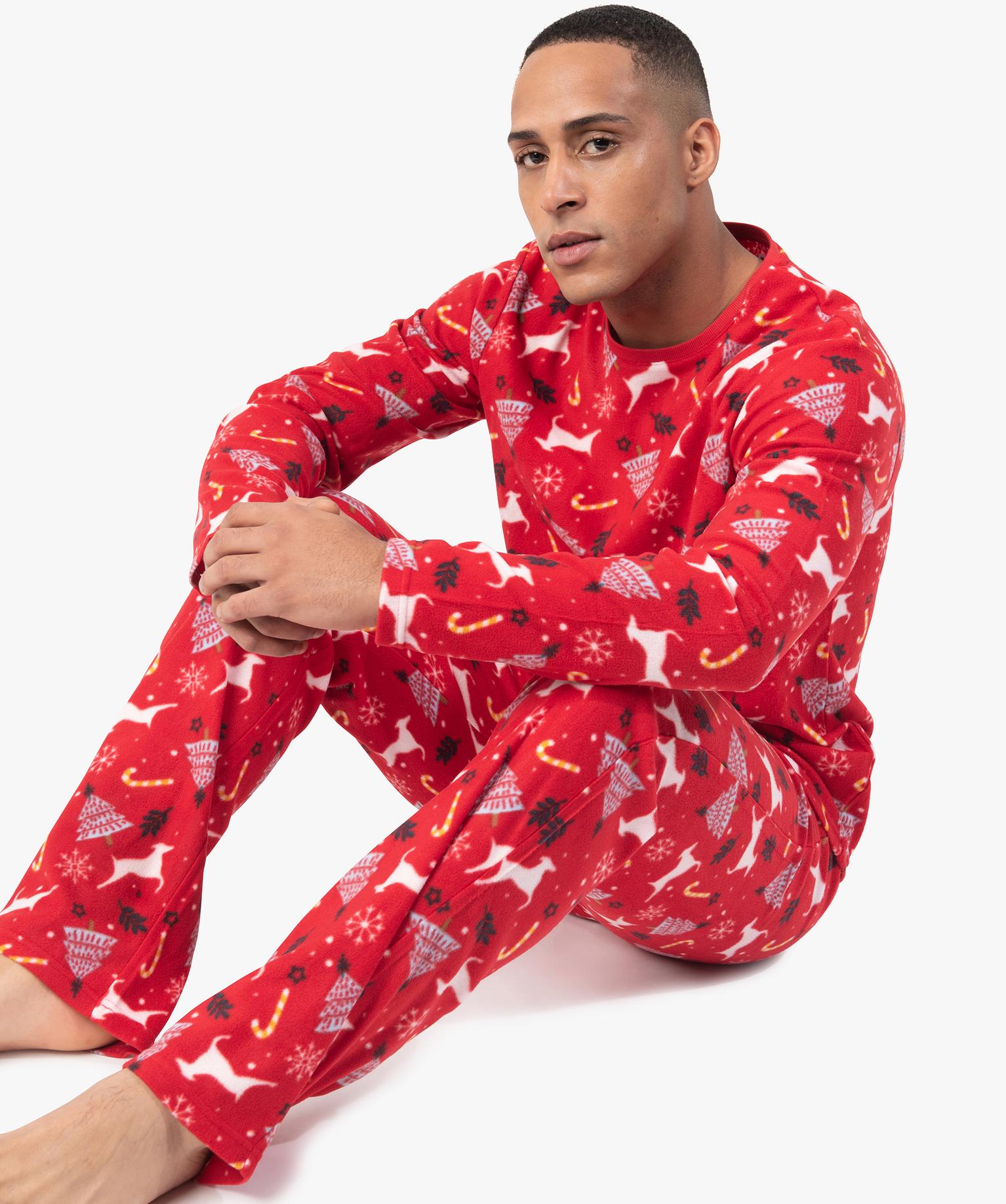 Craquez pour le coloris pétillant et pour les jolis motifs de ce pyjama spécial Noël. Un pyjama pour homme confectionné dans une matière polaire fine qui offre une douce chaleur réconfortante. Ce pyjama se compose d’un haut à manches longues et col rond et d’un bas de pantalon droit avec ceinture élastiquée. Cette tenue d’intérieur sera parfaite pour les soirées en famille pendant les fêtes de fin d’année.